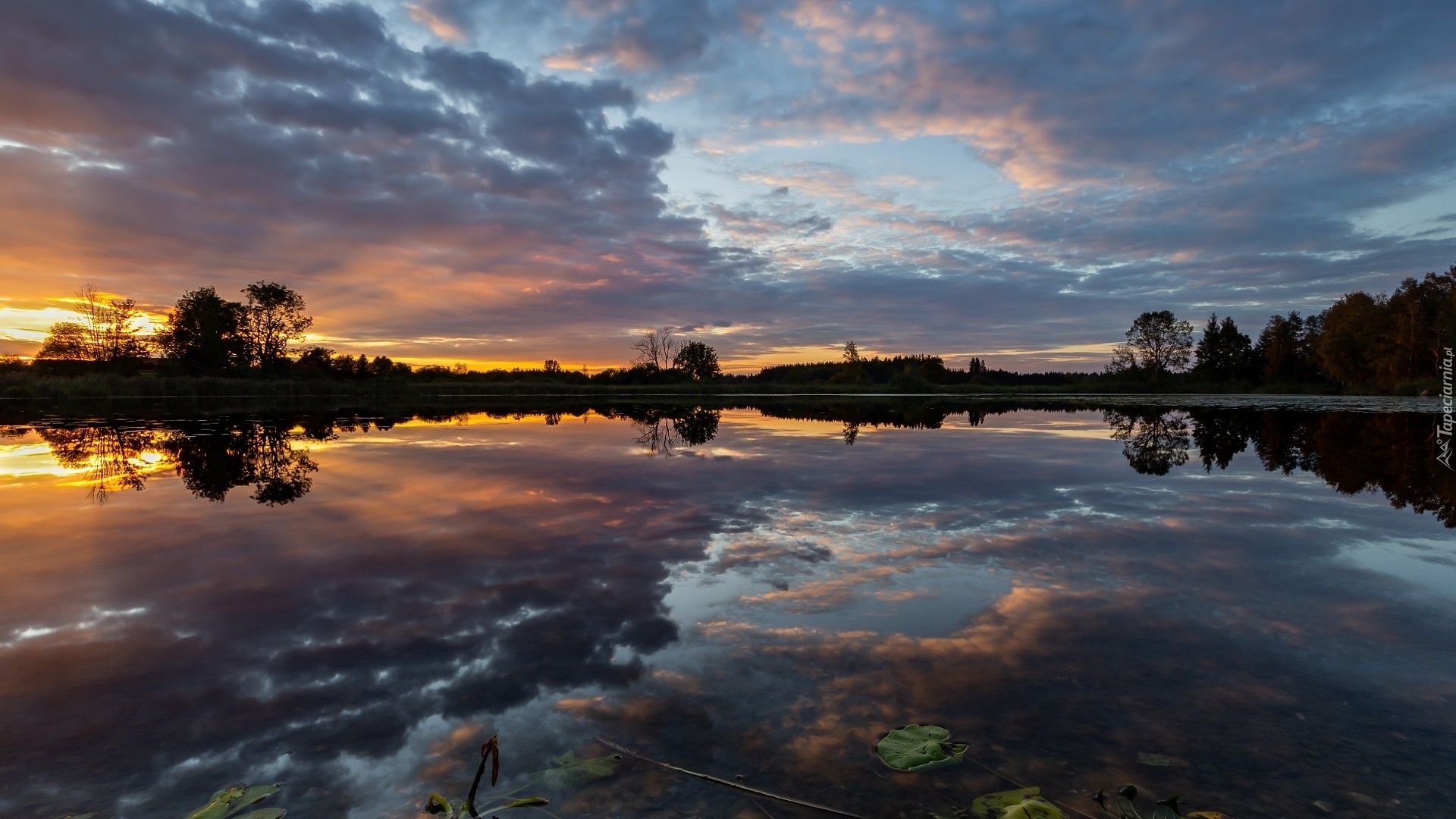 Edytor tapety: Jezioro z odbiciem pochmurnego nieba