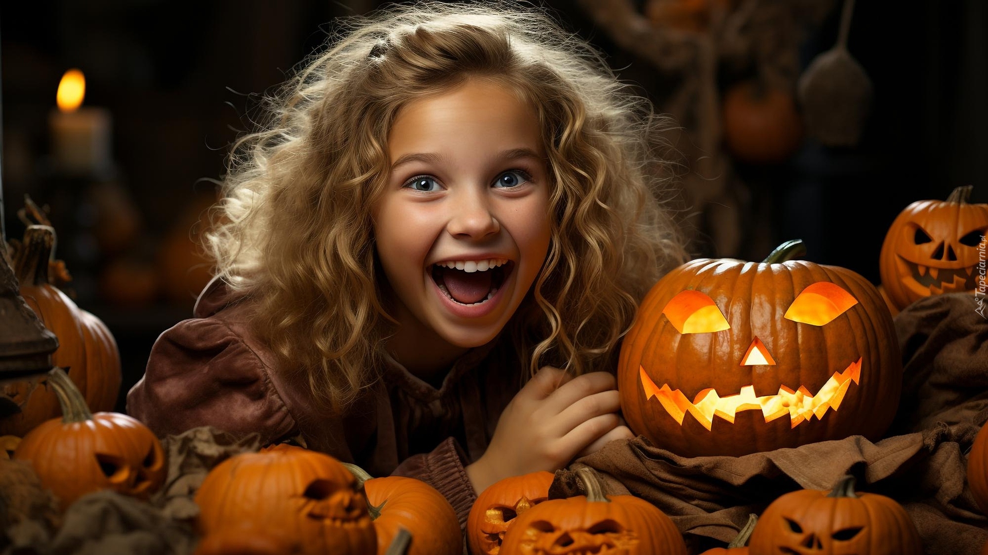 Edytor tapety: Dziewczynka i dynie na Halloween