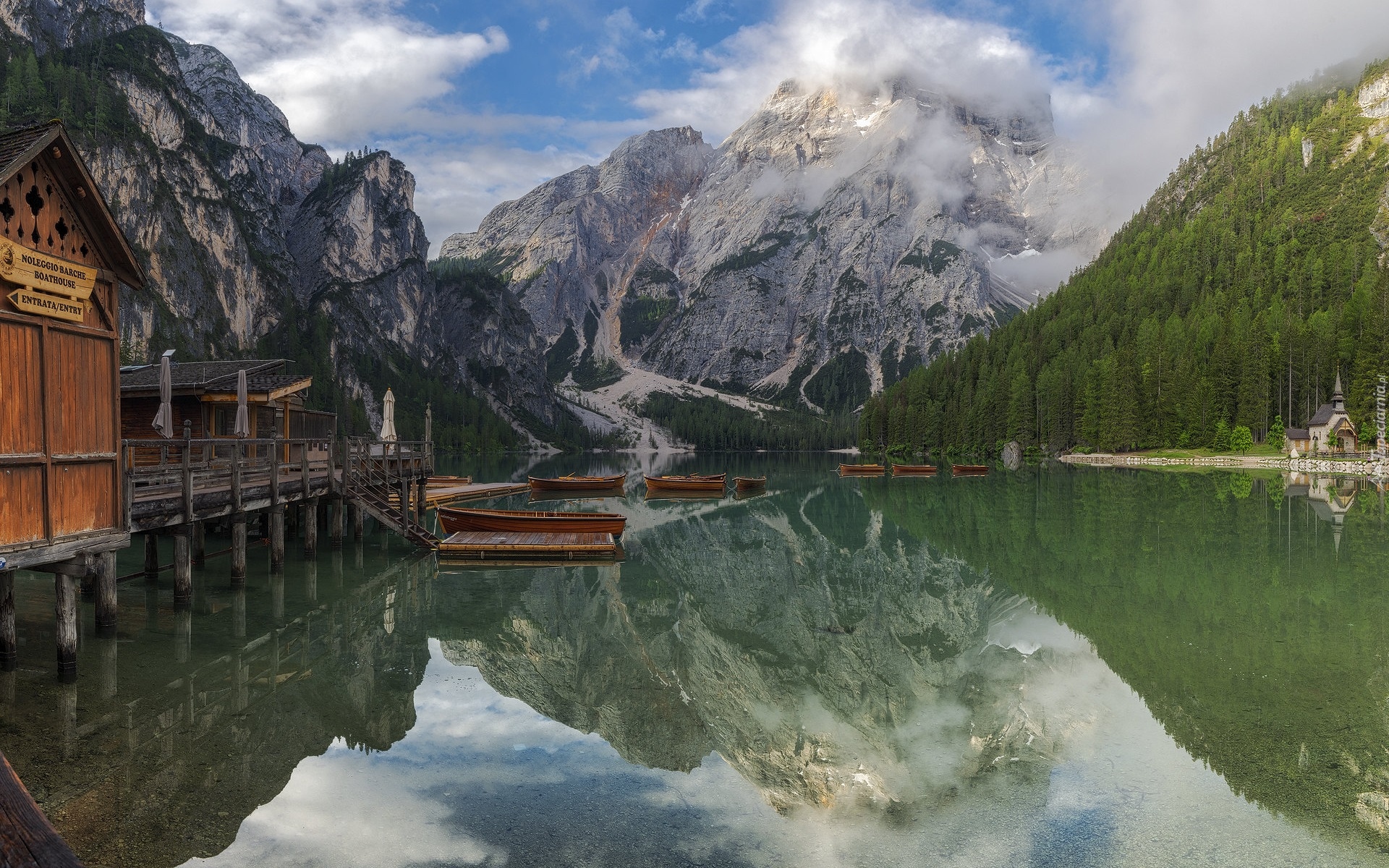 Edytor tapety: Łódki na jeziorze Braies we włoskich Dolomitach