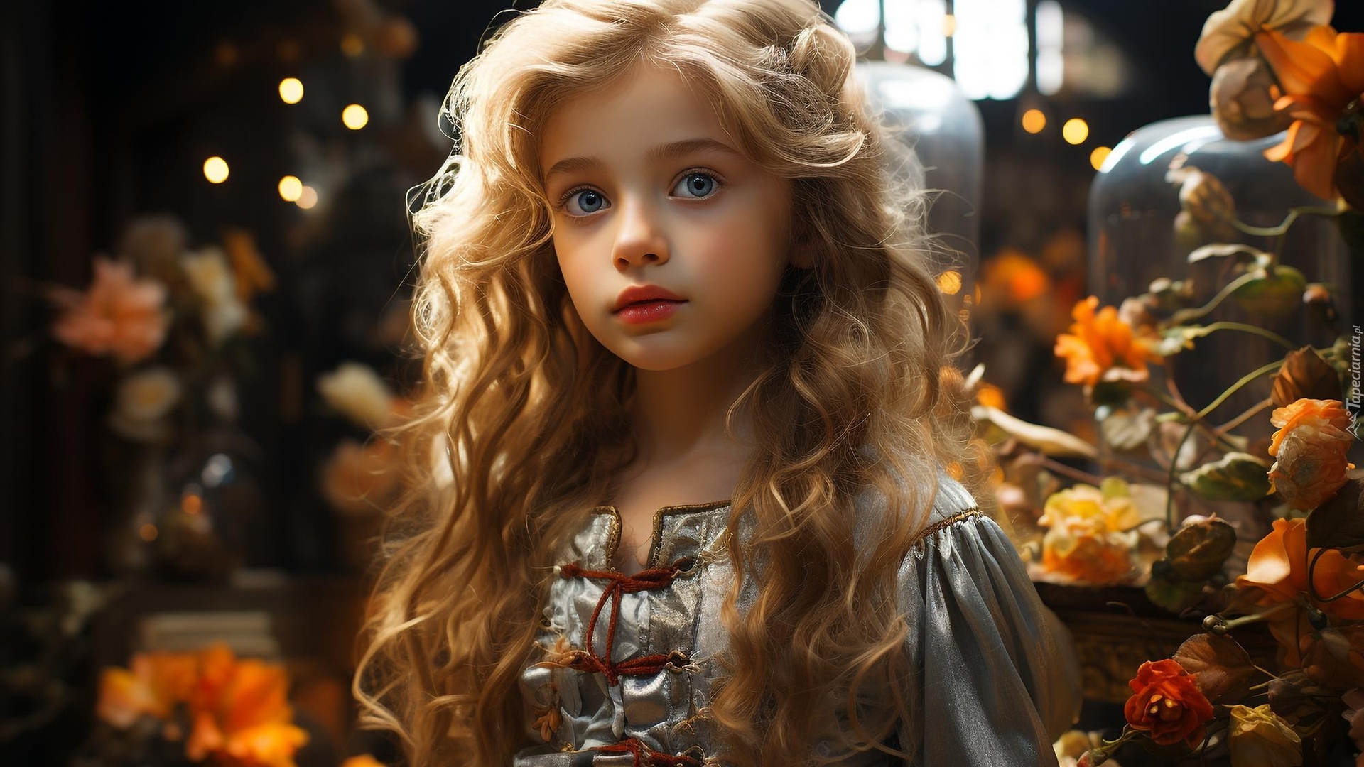 Edytor tapety: Dziewczynka z długimi włosami obok kwiatów