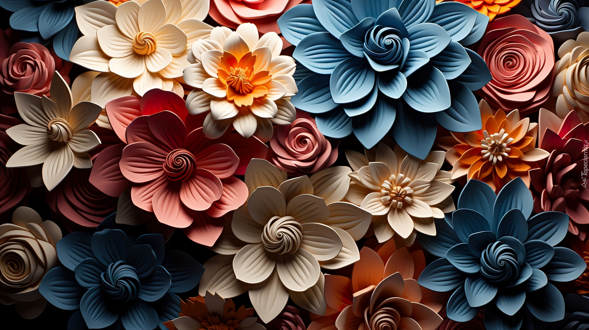 Edytor tapety: Rozwinięte różnokolorowe kwiaty w grafice
