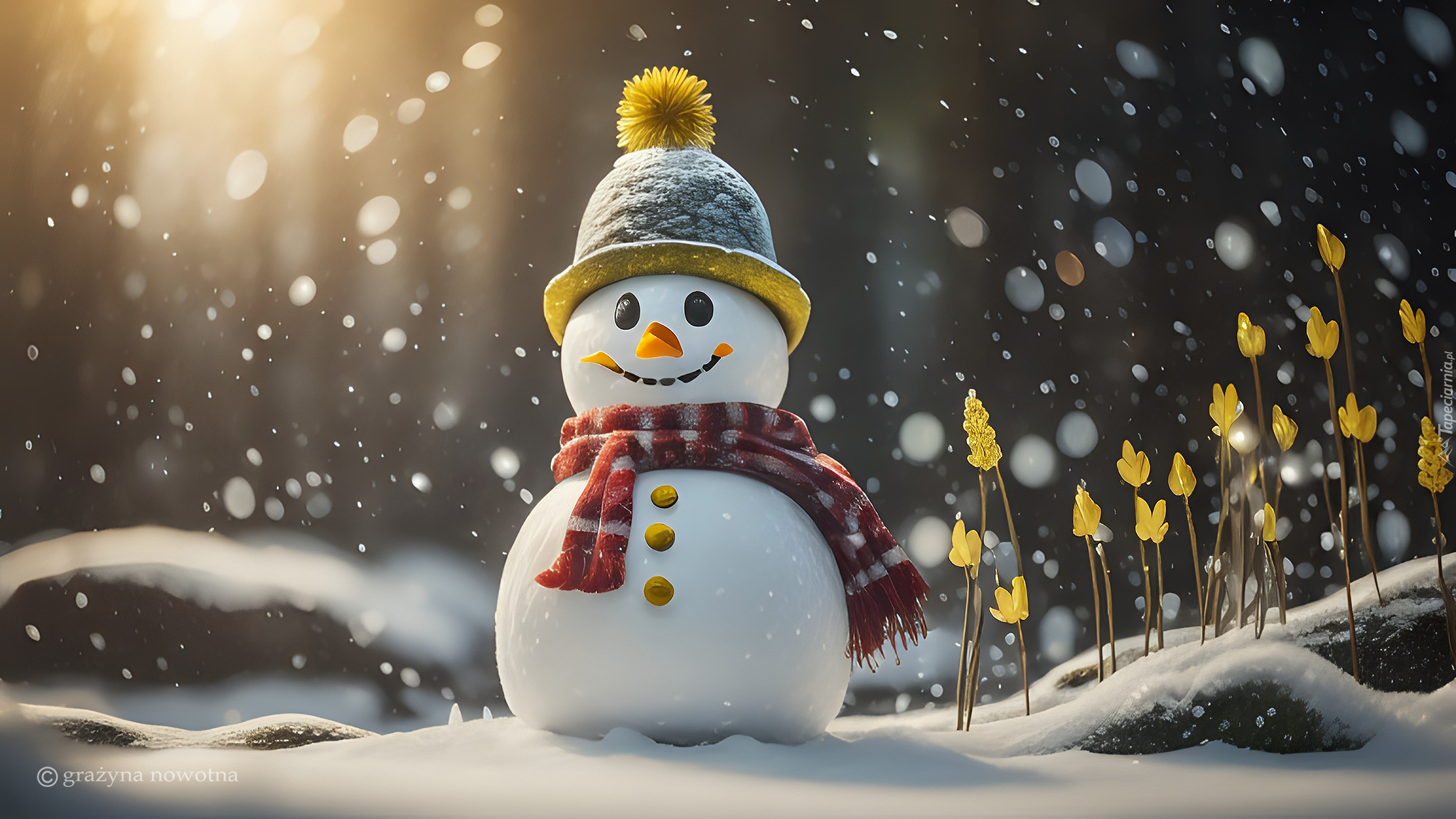 Edytor tapety: Bałwanek w czapce i kraciastym szaliku