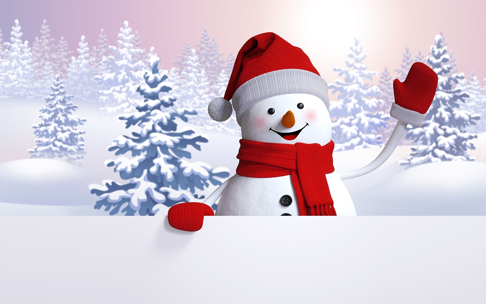 Edytor tapety: Bałwanek w czerwonej czapce machający ręką