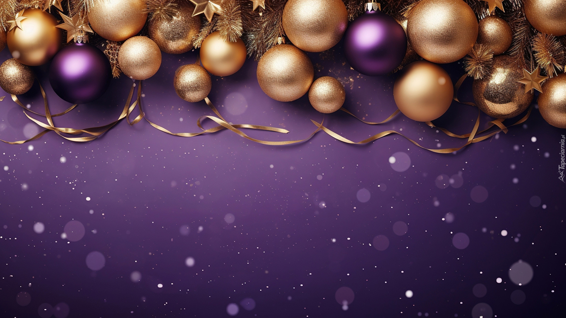 Edytor tapety: Złote i fioletowe bombki na fioletowym tle