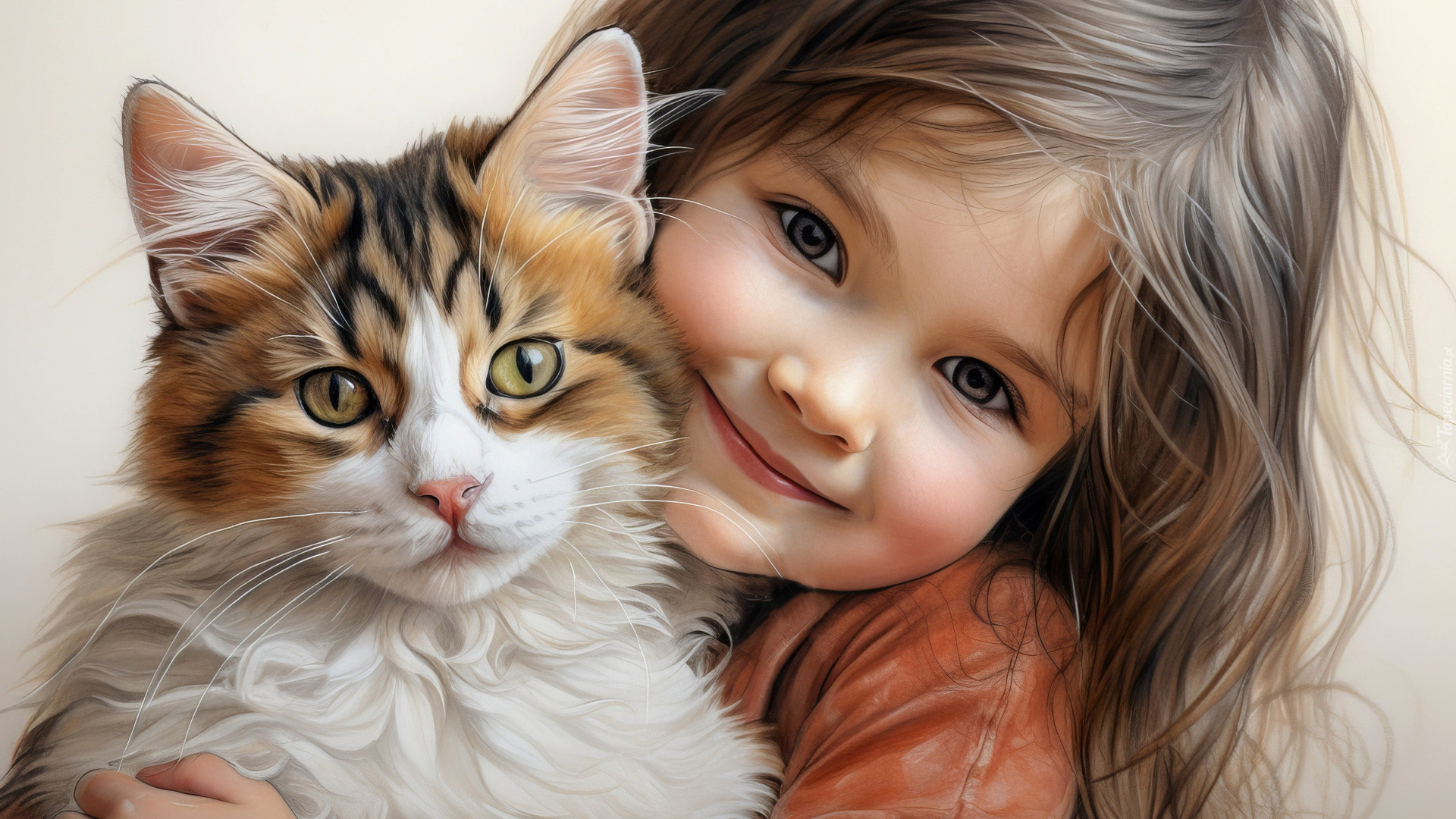 Edytor tapety: Radosna dziewczynka przytulona do kota