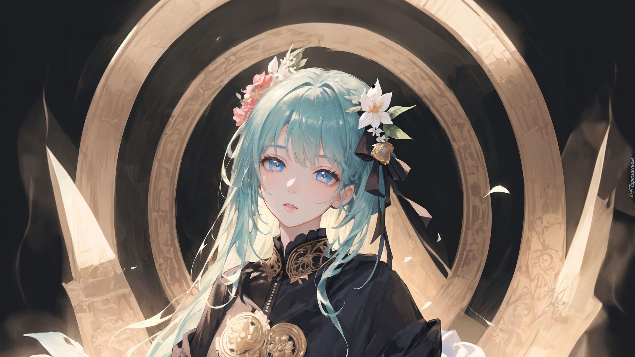 Edytor tapety: Dziewczyna z kwiatami w niebieskich włosach