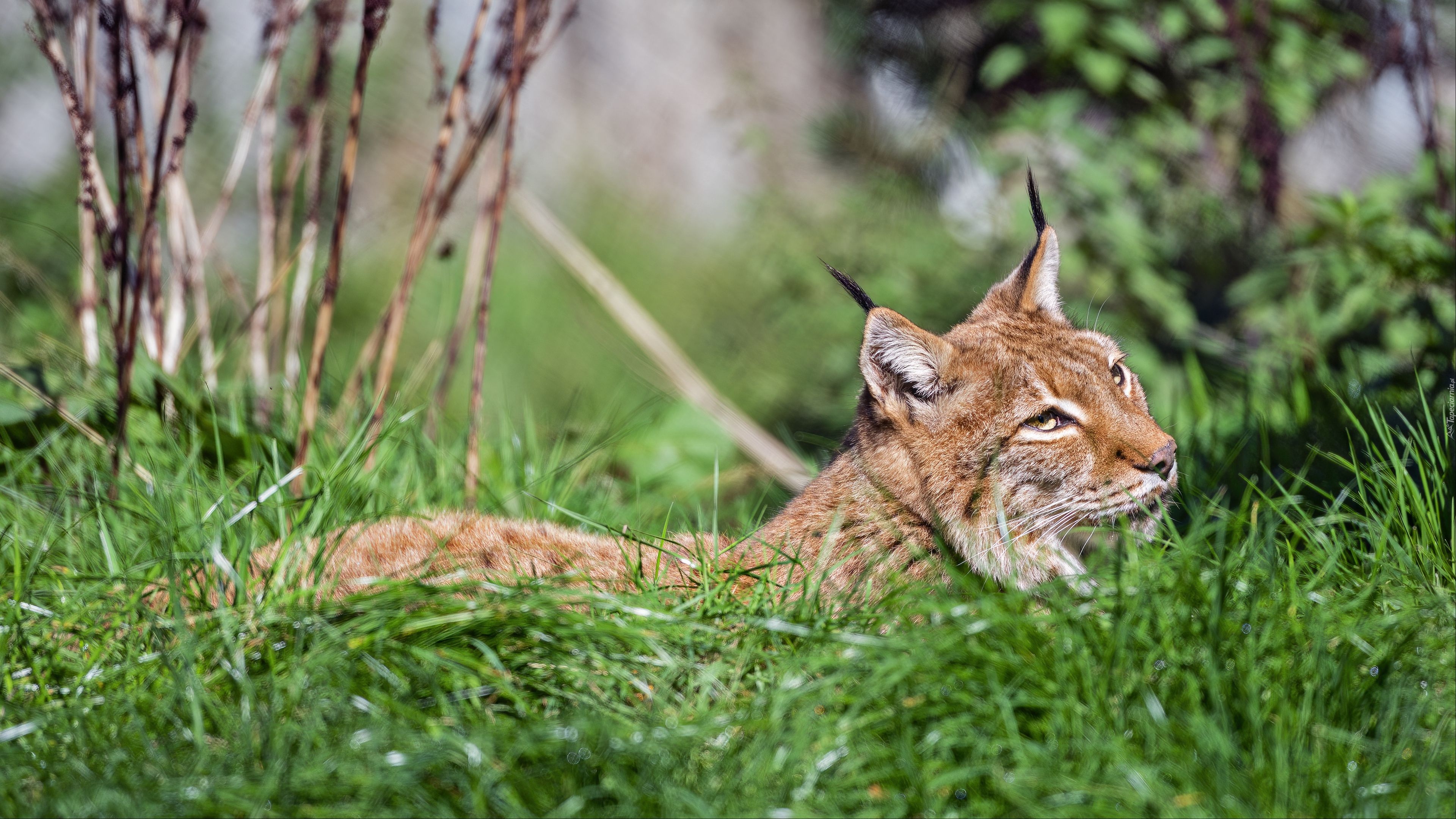 Edytor tapety: Ryś leżący w trawie
