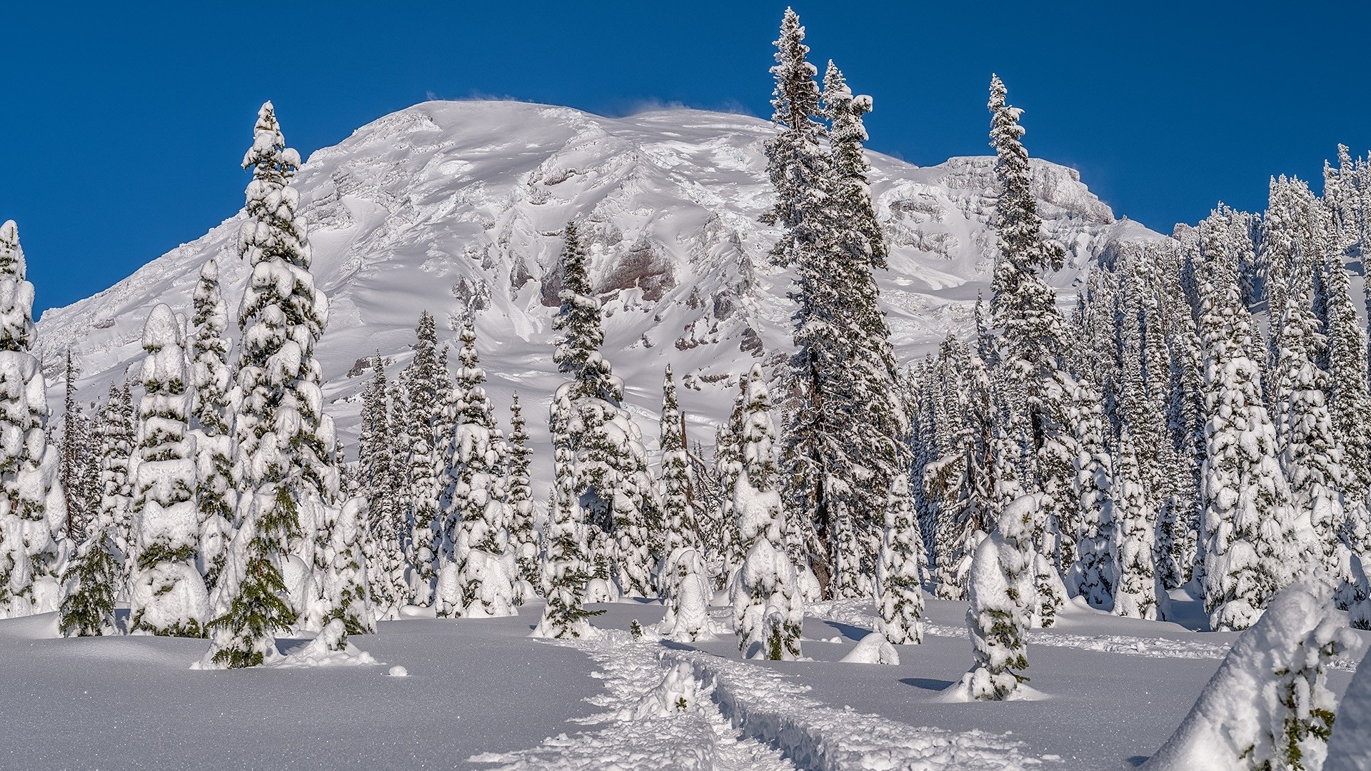 Edytor tapety: Park Narodowy Mount Rainier w słoneczny zimowy dzień