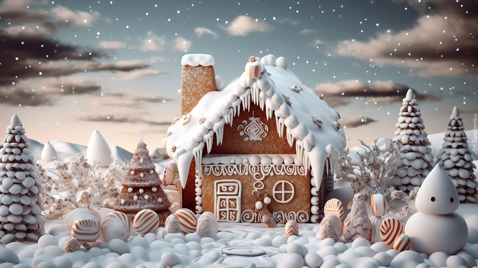 Edytor tapety: Piernikowy ośnieżony domek