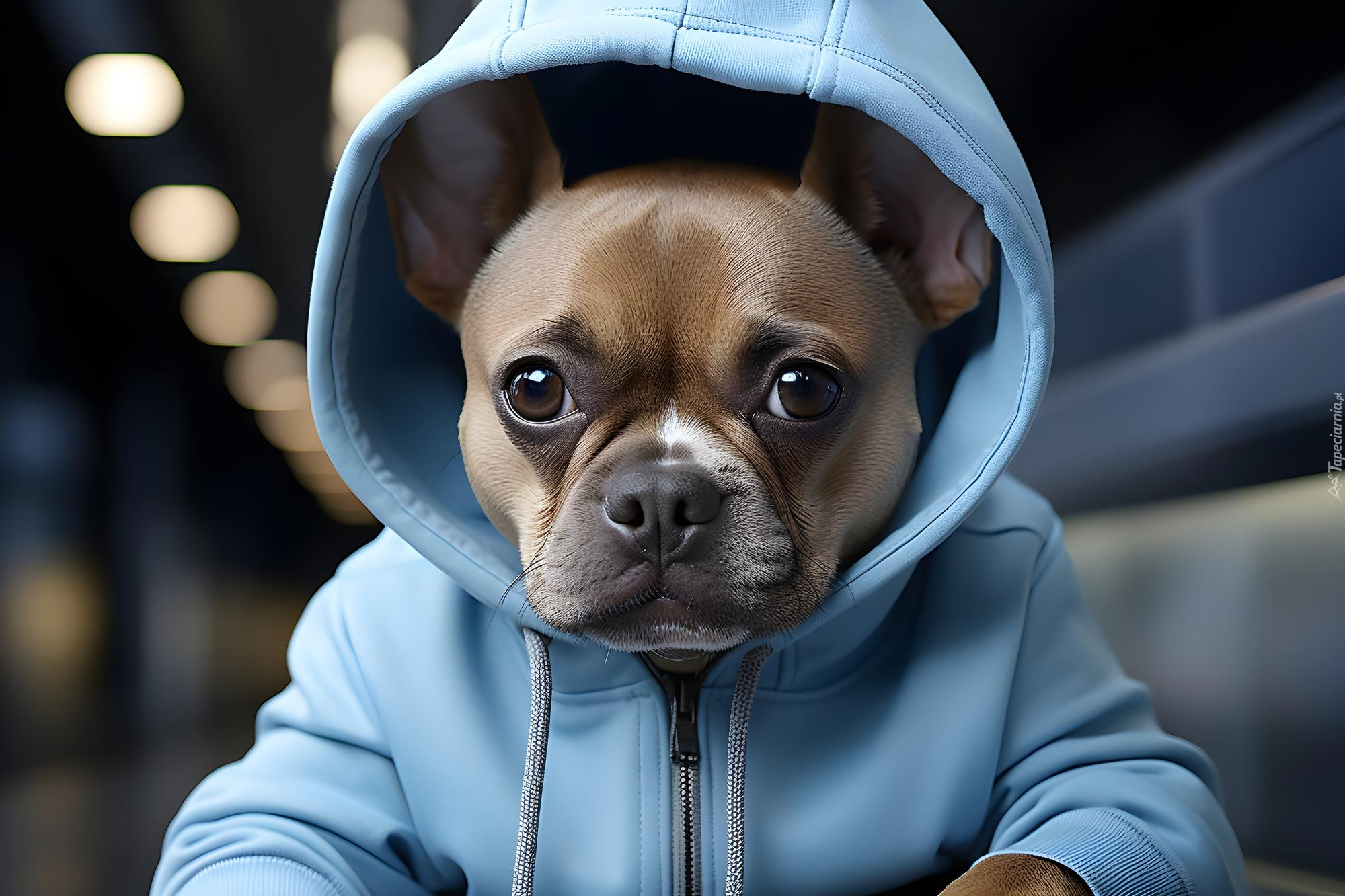 Edytor tapety: Buldog francuski w bluzie z kapturem