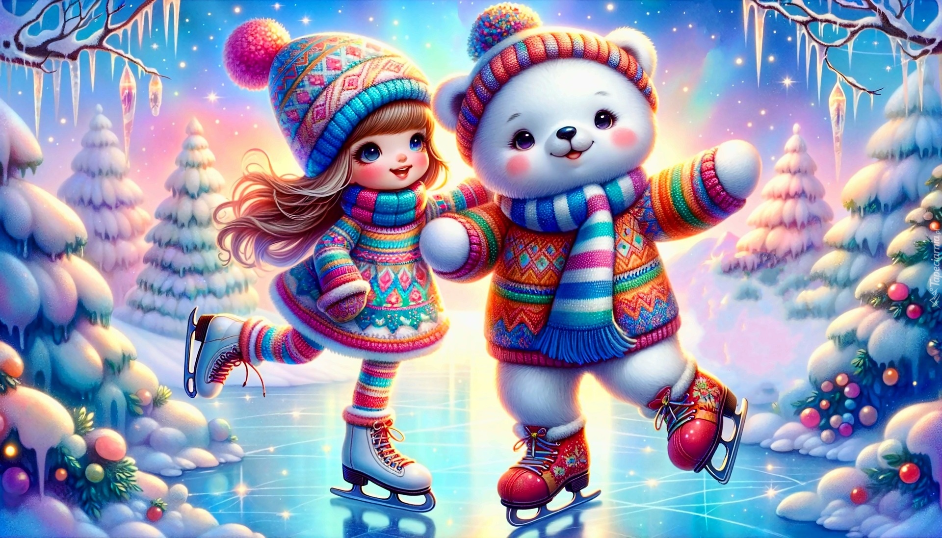 Edytor tapety: Dziewczynka z niedźwiadkiem polarnym na lodowisku