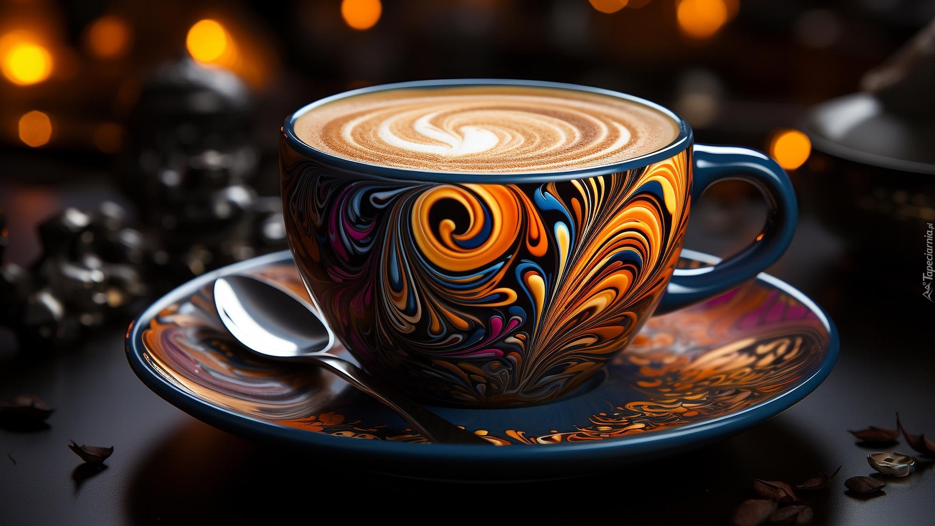 Edytor tapety: Cappuccino w kolorowej filiżance