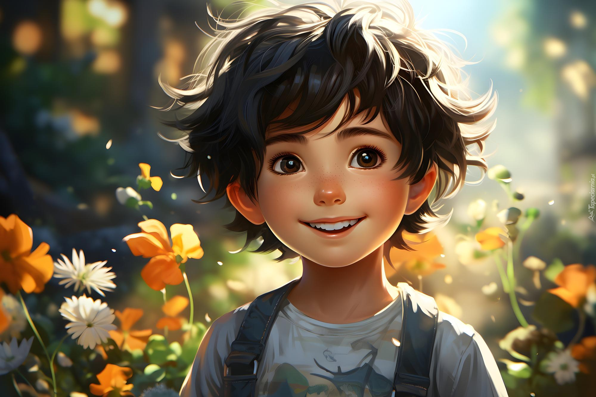 Edytor tapety: Uśmiechnięta twarz chłopca