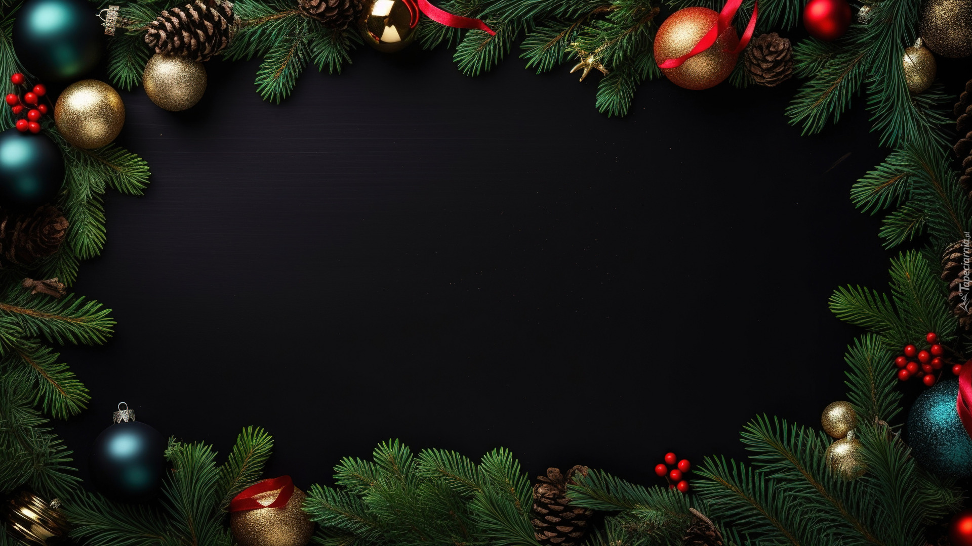 Edytor tapety: Gałązki z kolorowymi bombkami na czarnym tle
