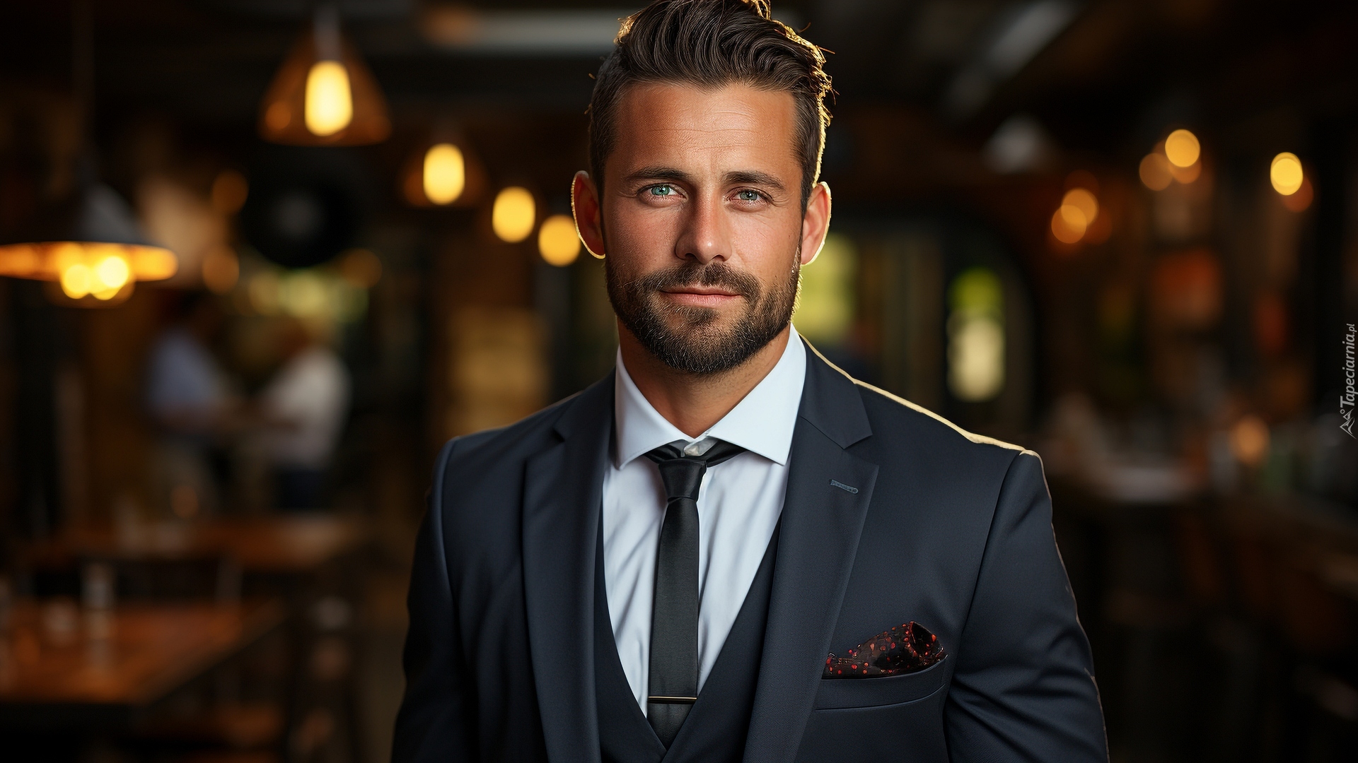 Edytor tapety: Mężczyzna z zarostem w garniturze