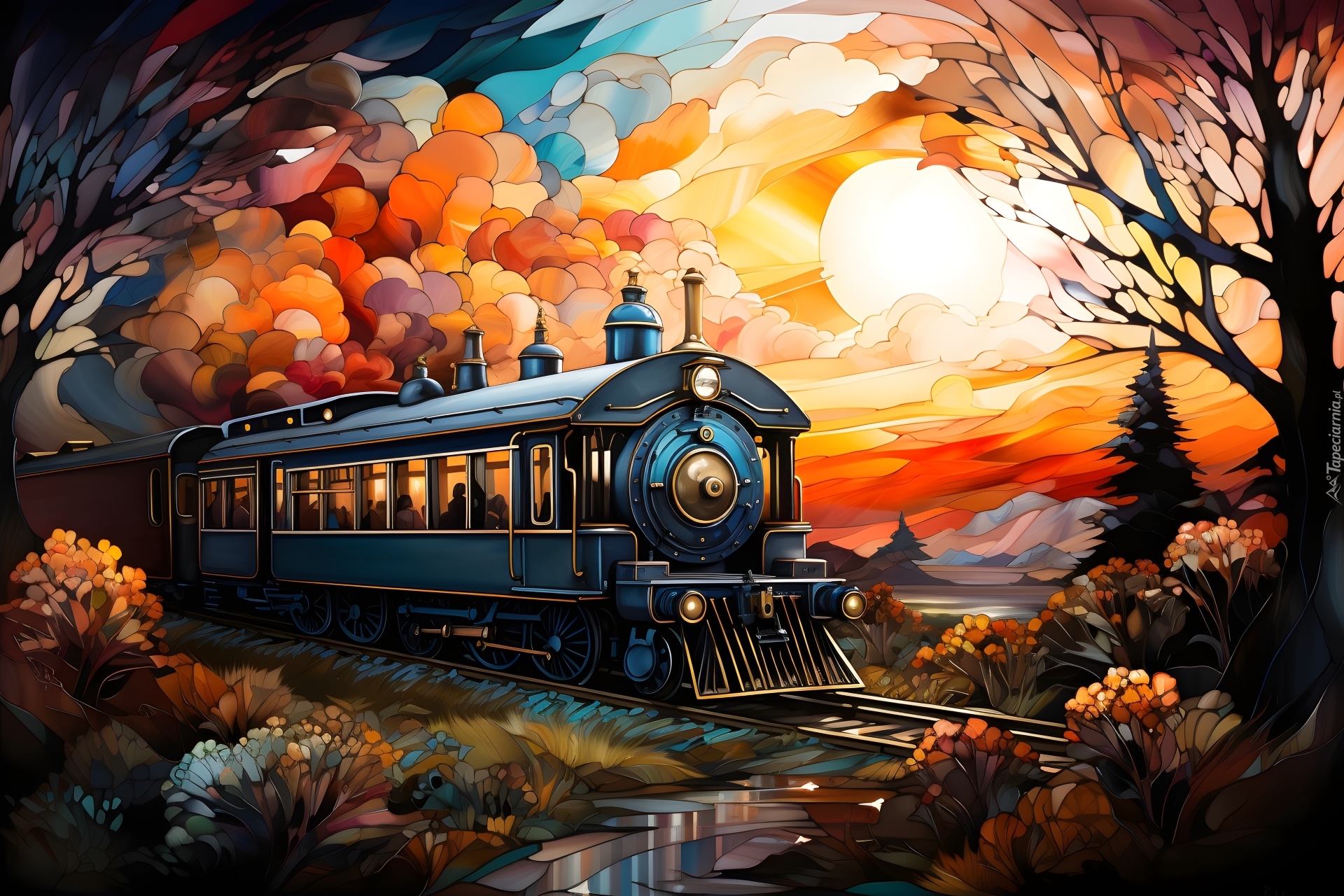 Edytor tapety: Pociąg na torach w jesiennej scenerii