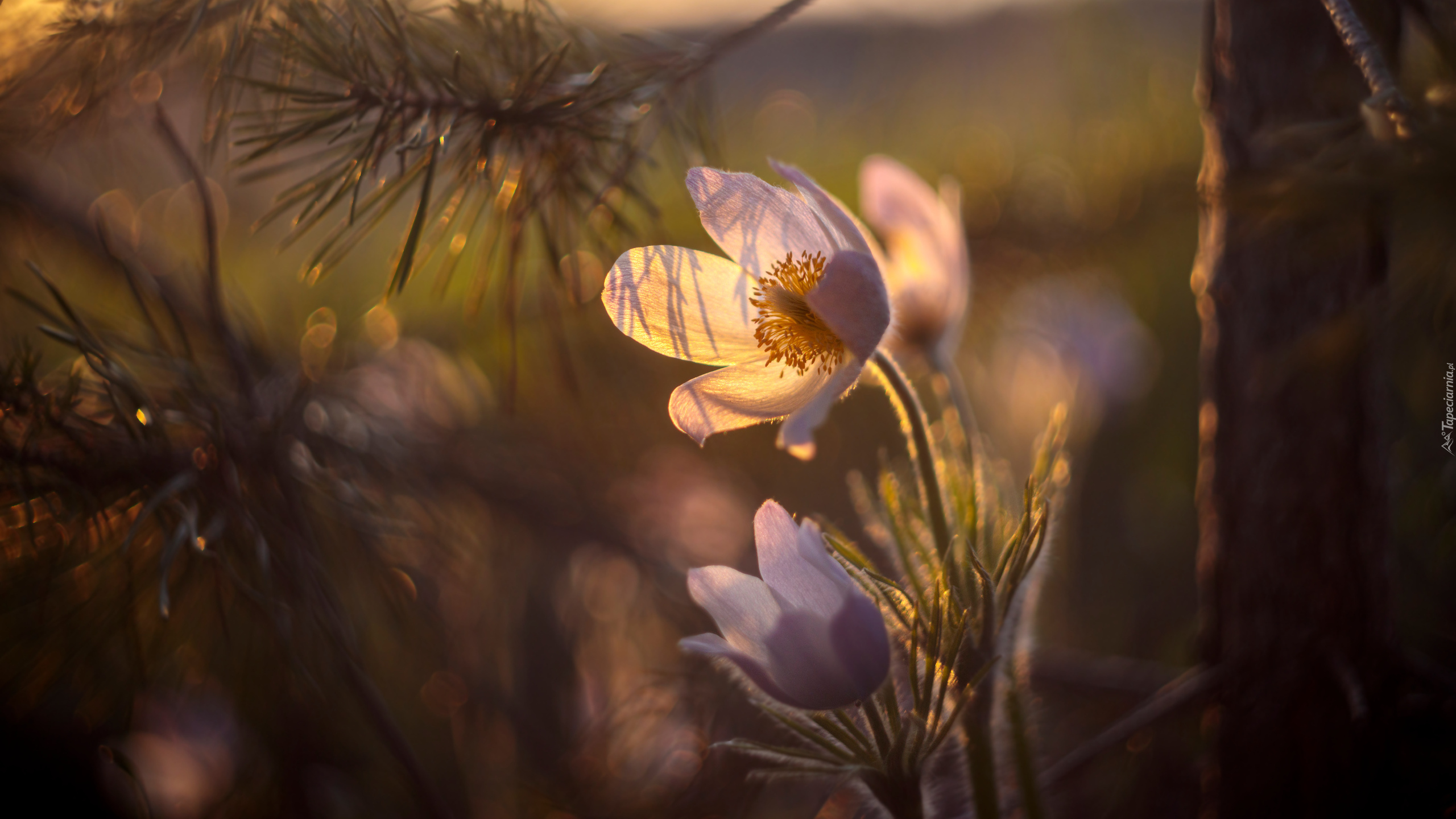 Edytor tapety: Rozświetlona sasanka pod gałązką