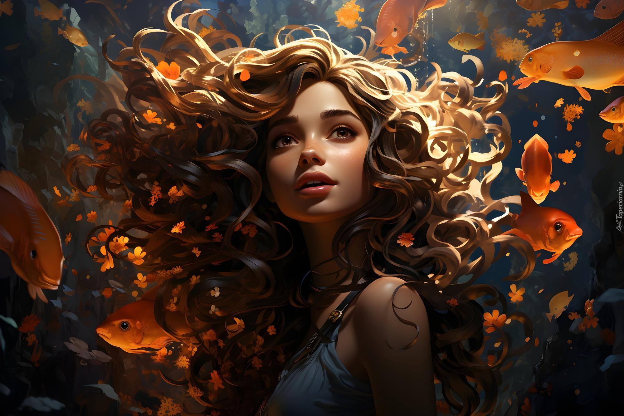Edytor tapety: Dziewczyna z długimi kręconymi włosami