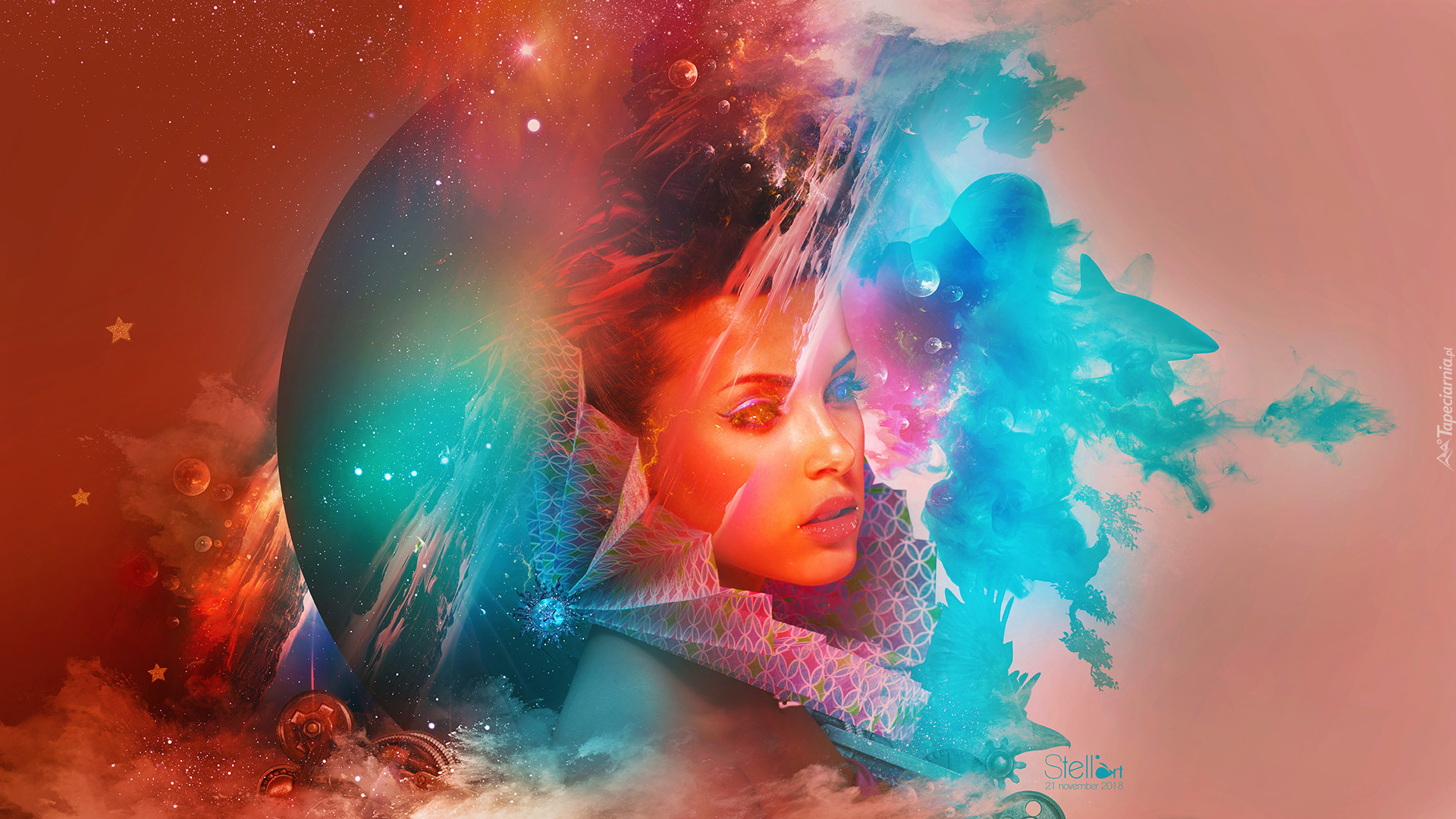 Edytor tapety: Twarz kobiety na tle kosmosu