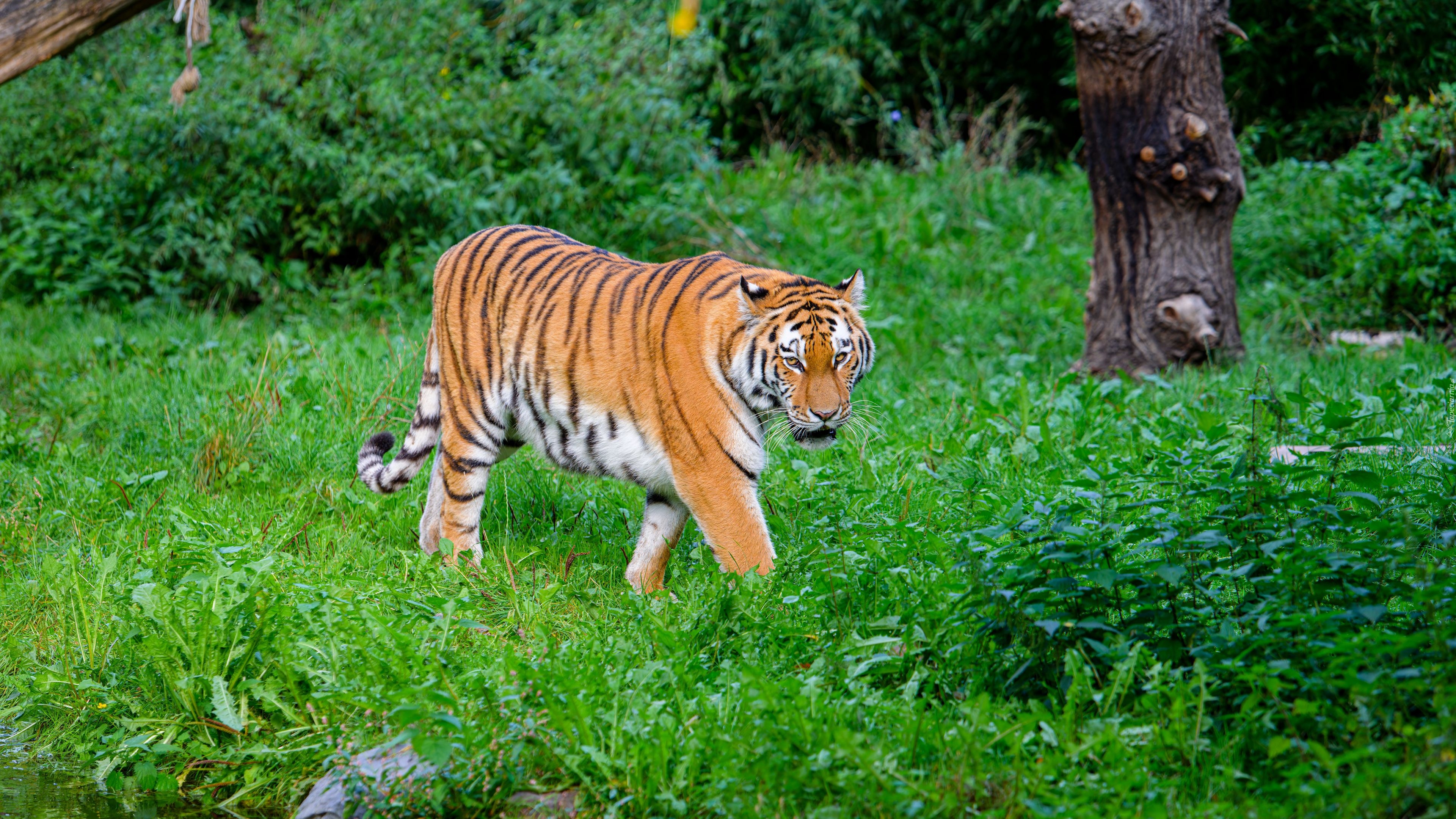 Edytor tapety: Tygrys idący po trawie