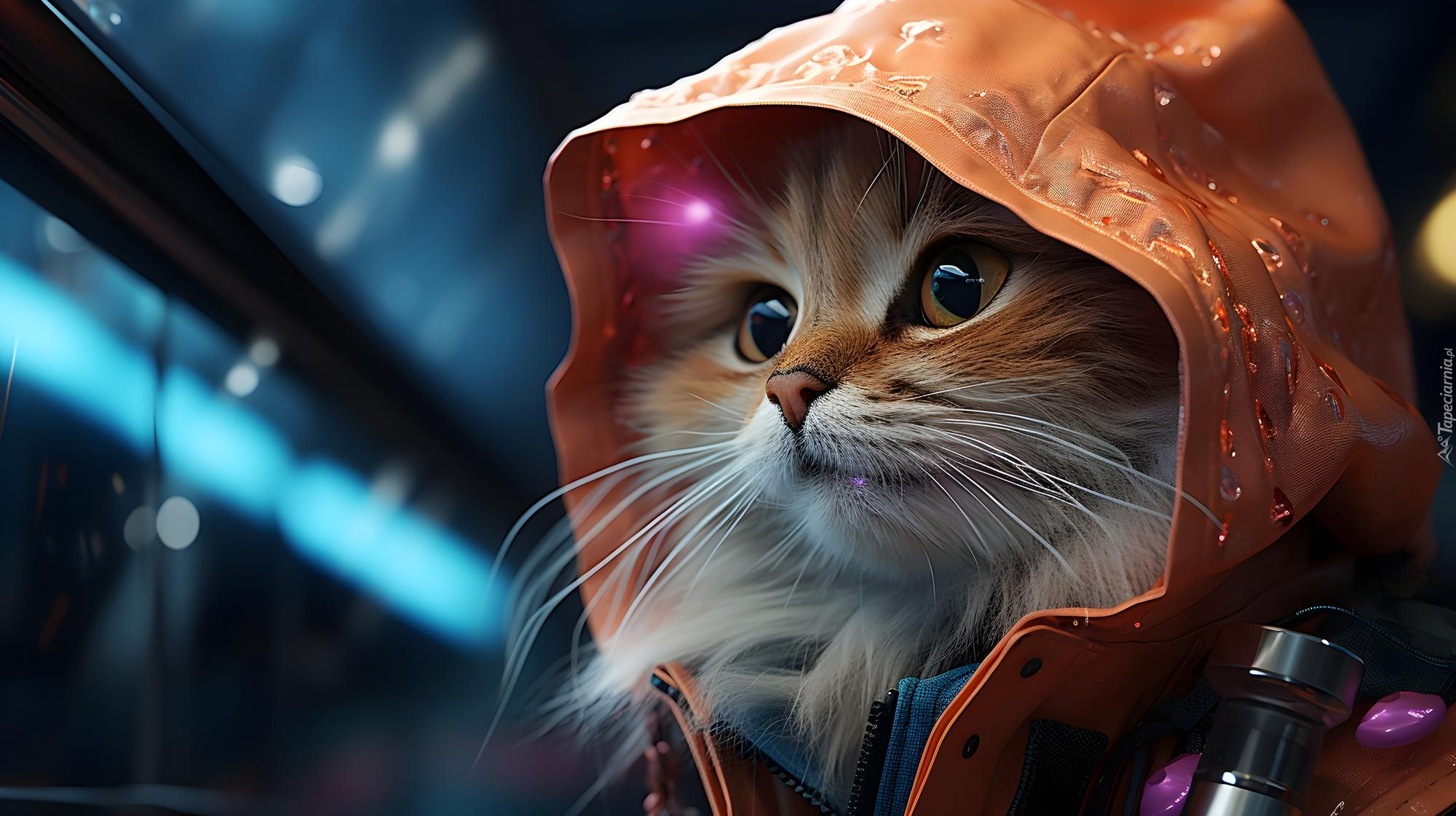 Edytor tapety: Kotek z kapturem na głowie