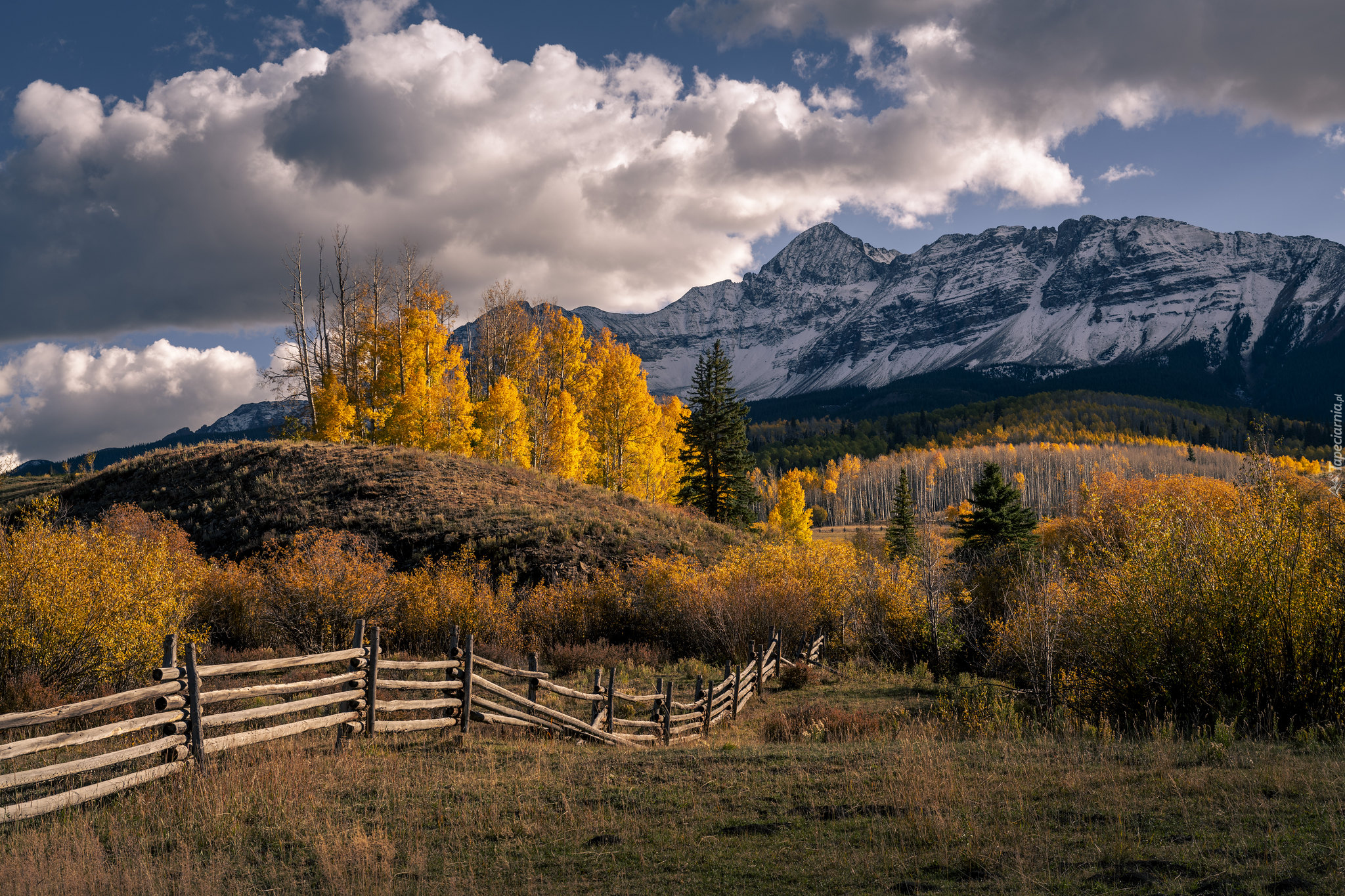 Edytor tapety: Pożółkłe drzewa na tle gór San Juan Mountains