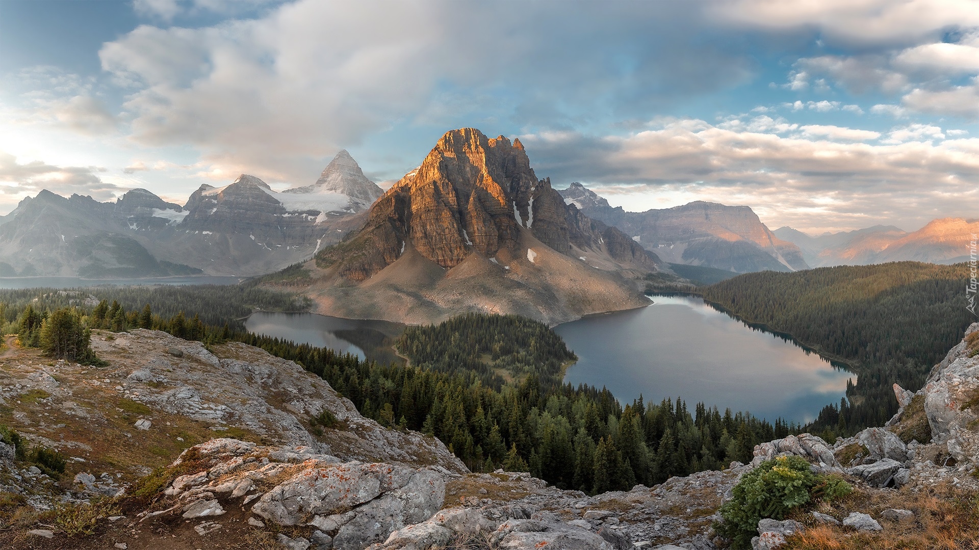 Edytor tapety: Góra Mount Assiniboine nad dwoma jeziorami w Kanadzie