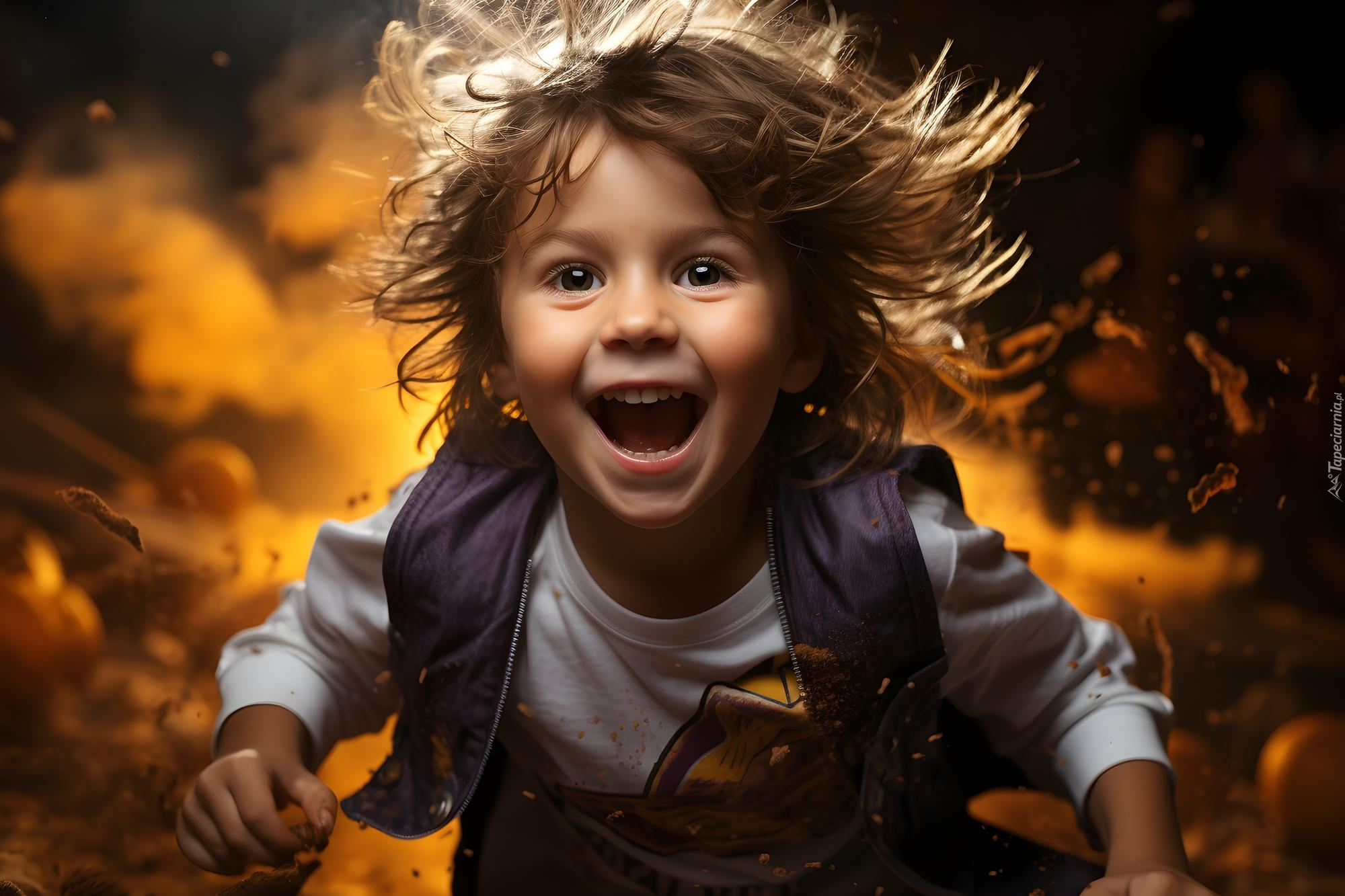 Edytor tapety: Uśmiechnięty chłopiec z rozwianymi włosami