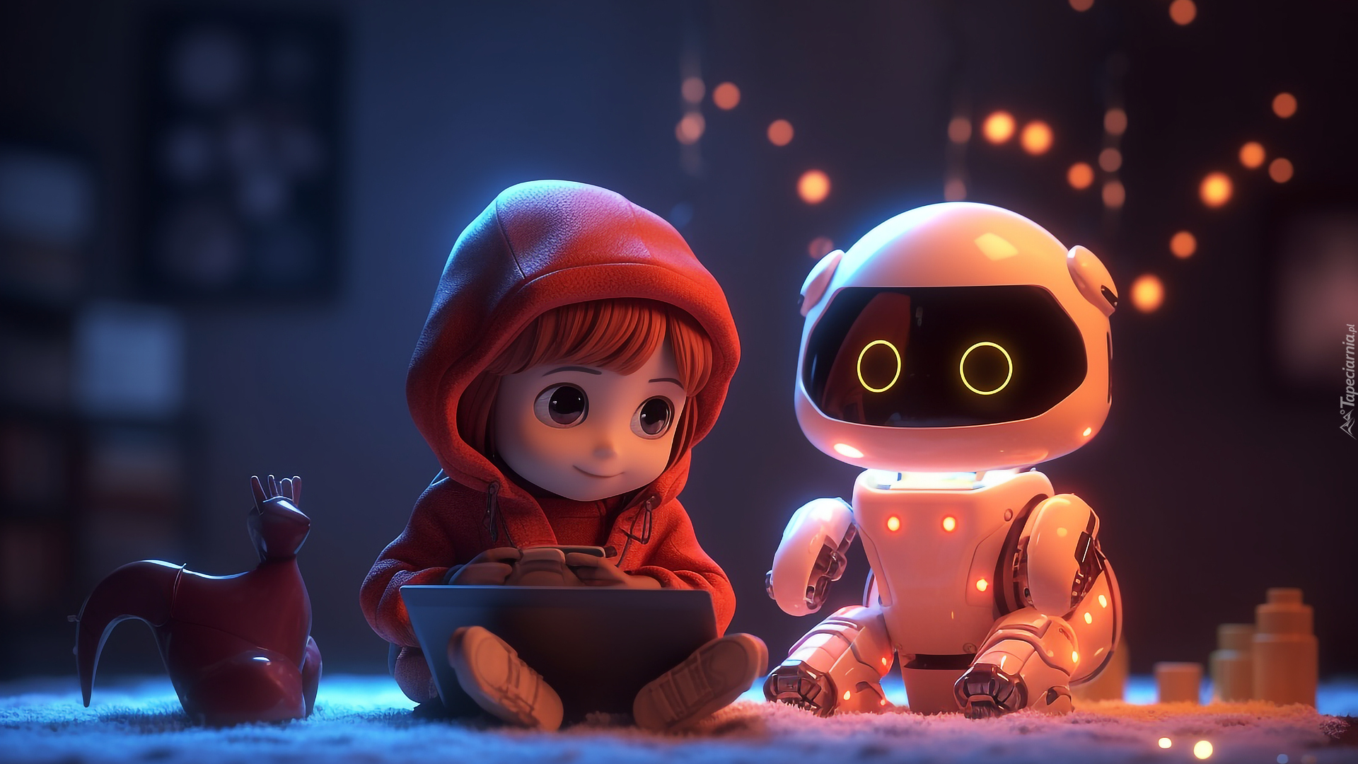 Edytor tapety: Dziecko z laptopem obok robota