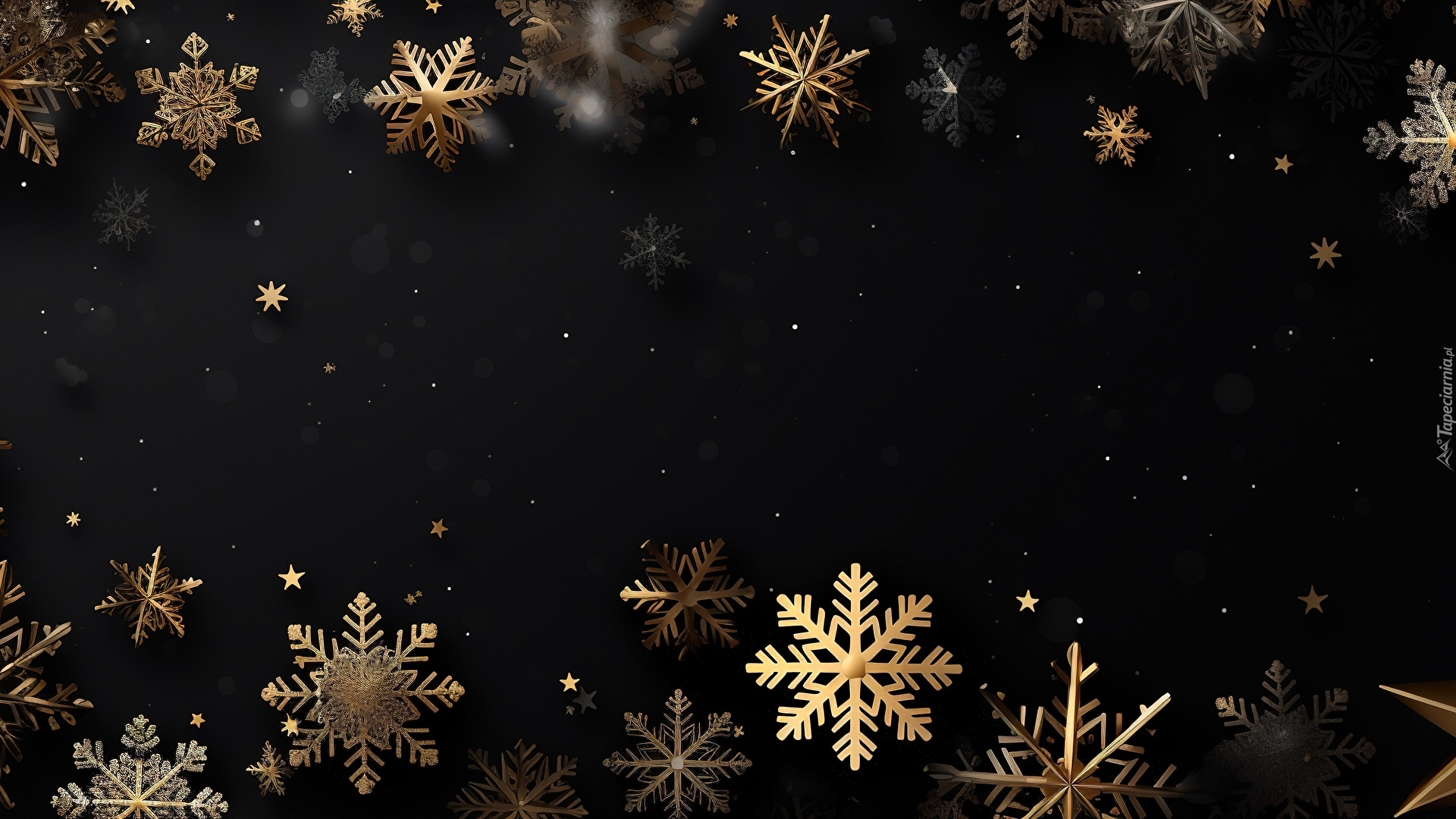 Edytor tapety: Śnieżynki i gwiazdki na czarnym tle