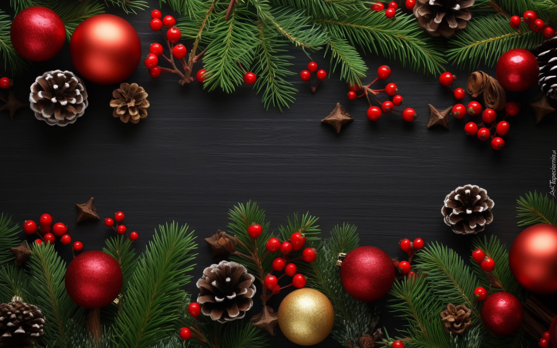 Edytor tapety: Ozdoby świąteczne na świerkowych gałązkach