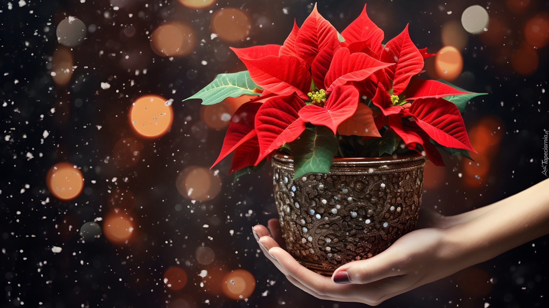 Edytor tapety: Gwiazda betlejemska w doniczce na dłoni