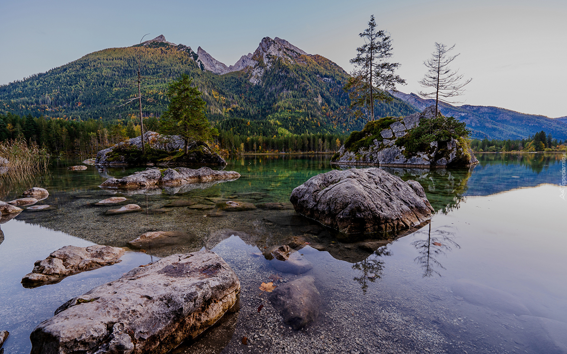 Edytor tapety: Skały i kamienie w jeziorze Hintersee w Niemczech