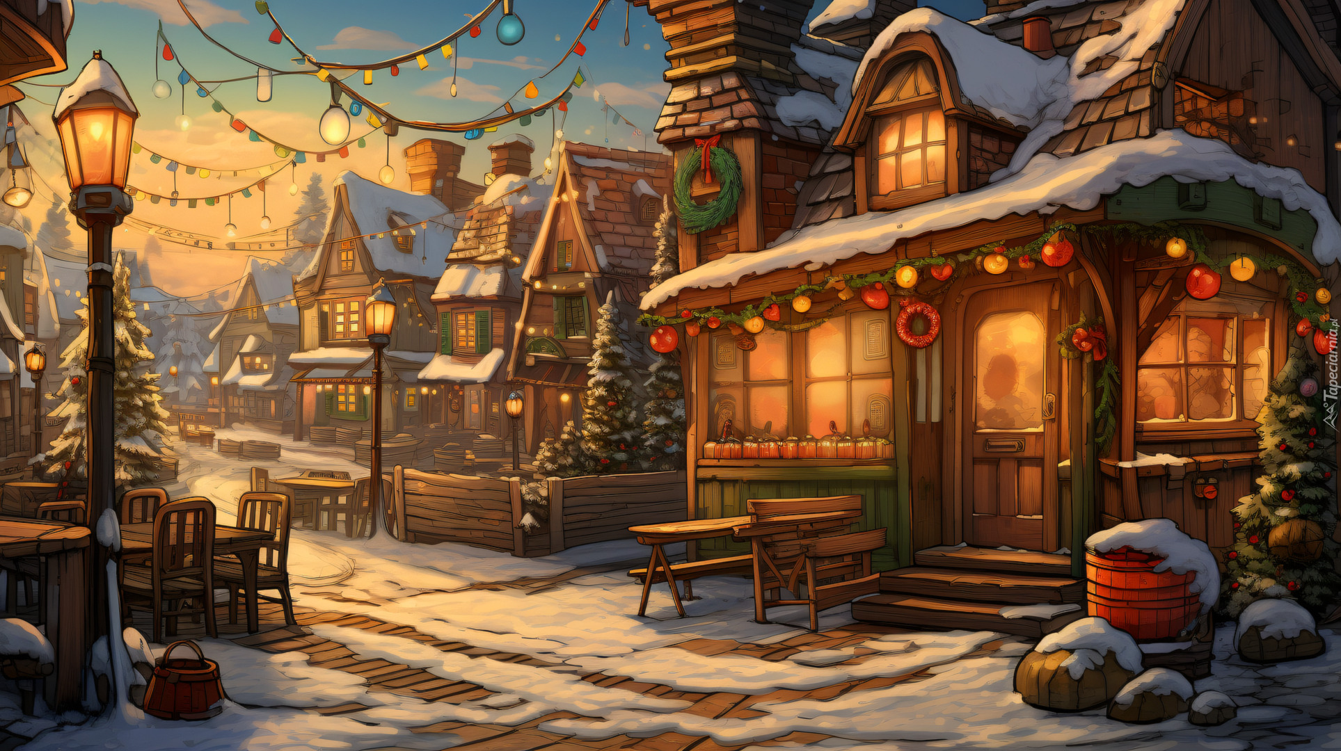 Edytor tapety: Udekorowane świątecznie drewniane domy
