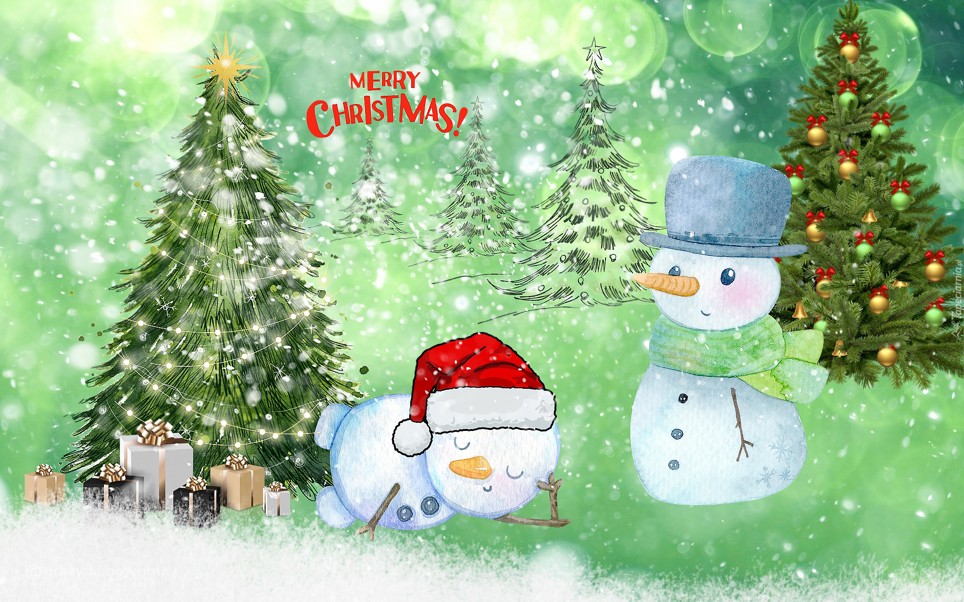 Edytor tapety: Bałwanki i choinki w świątecznej grafice