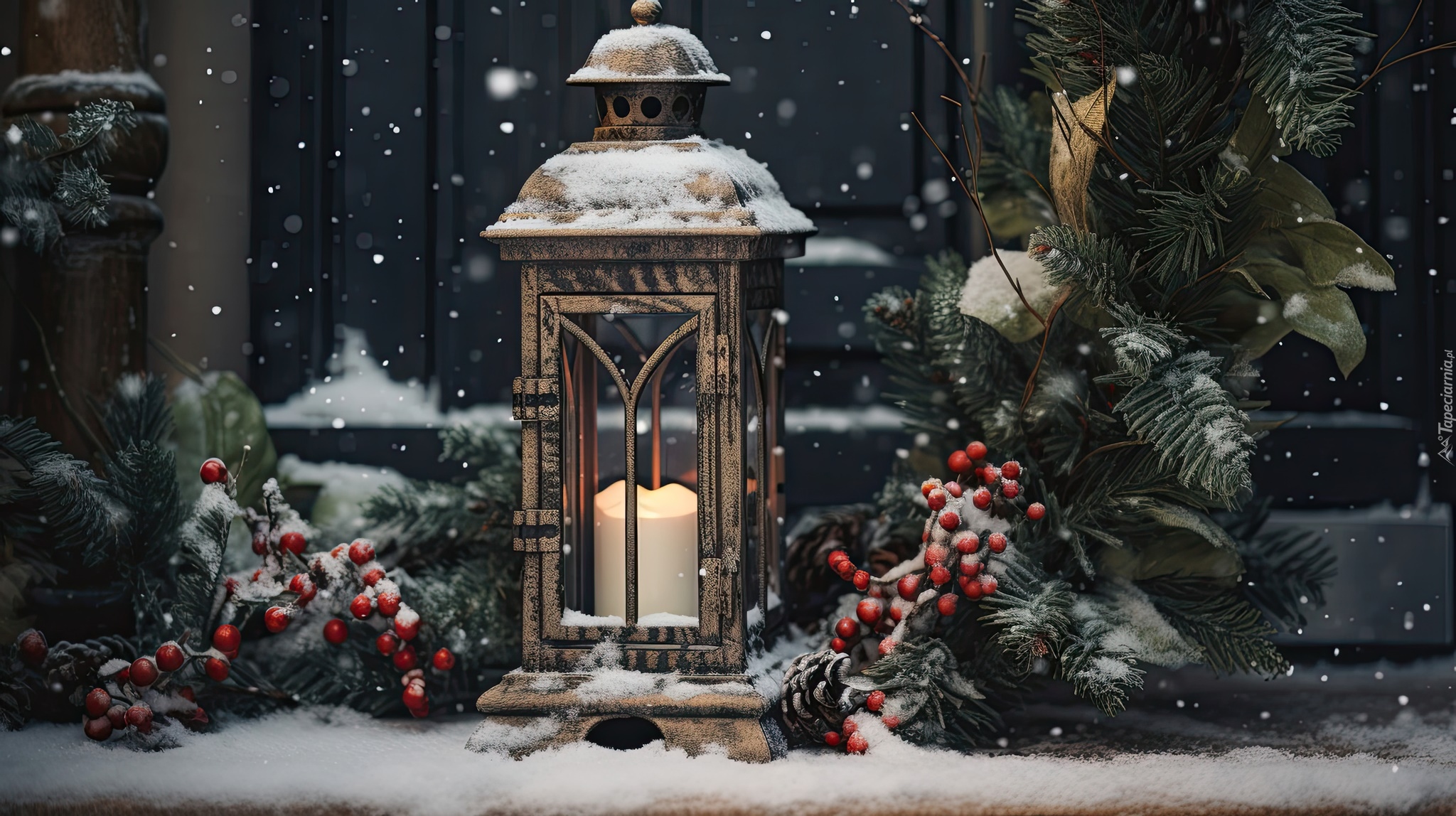 Edytor tapety: Lampion z ozdobną gałązką świąteczną