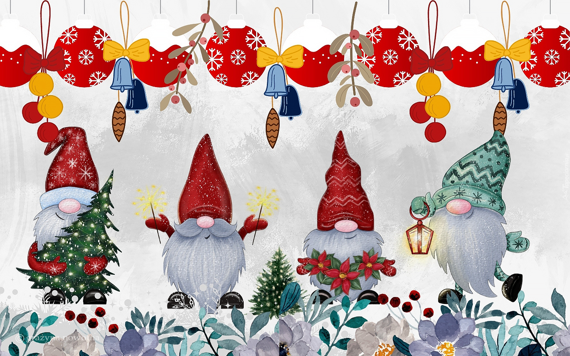 Edytor tapety: Skrzaty i zwisające bombki w grafice