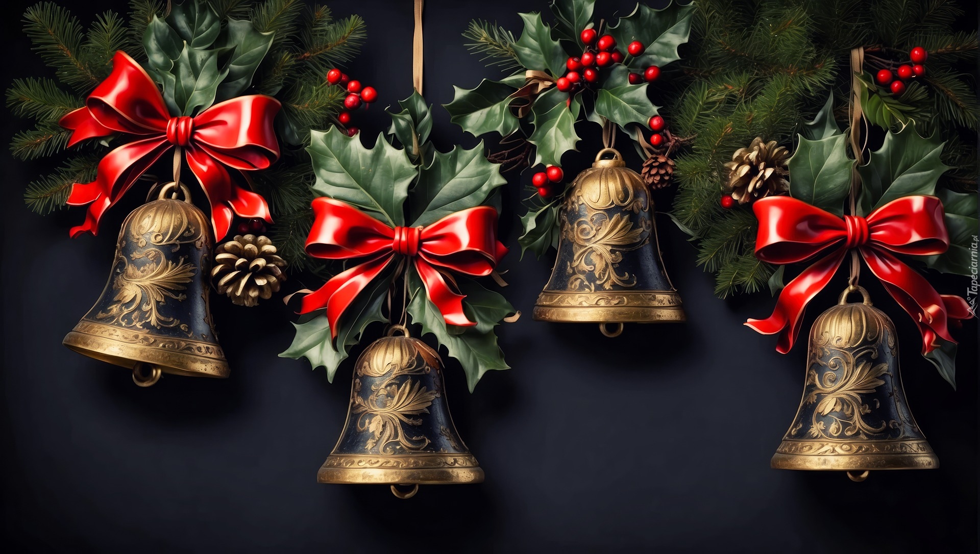 Edytor tapety: Cztery ozdobne dzwonki z czerwonymi kokardami