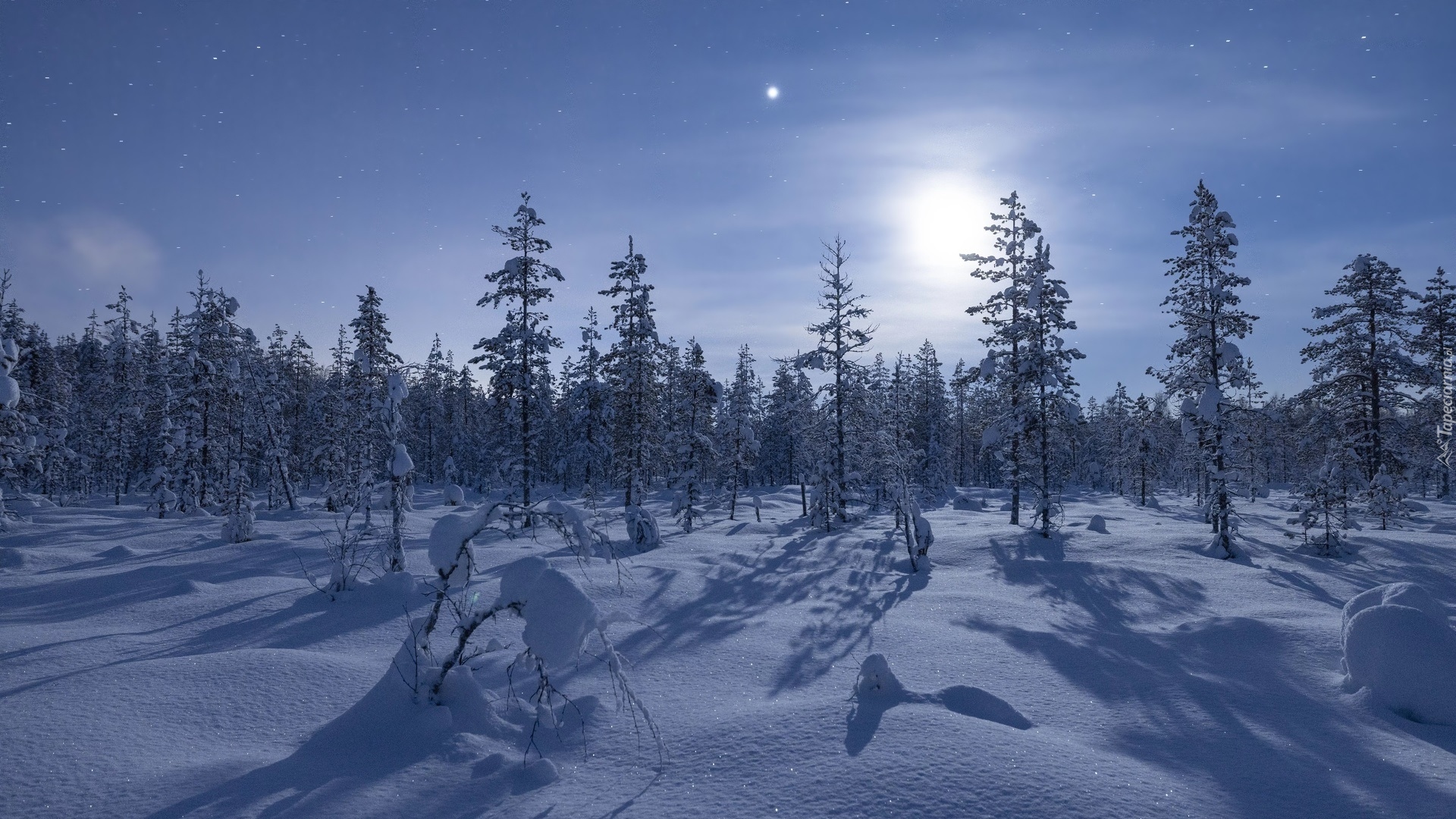 Edytor tapety: Ośnieżony las w księżycowym blasku