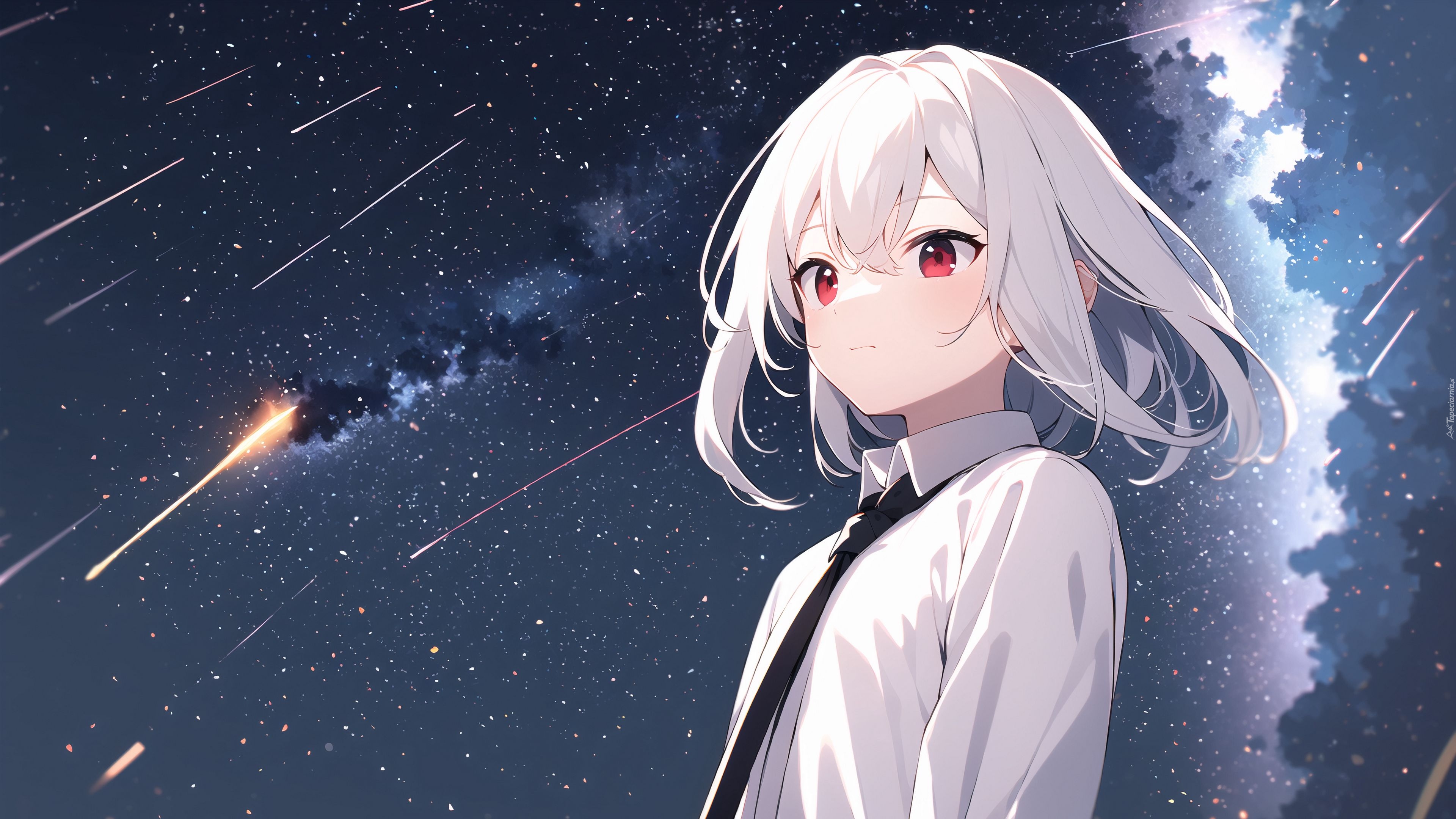 Edytor tapety: Dziewczyna w białej bluzce na tle rozgwieżdżonego nieba