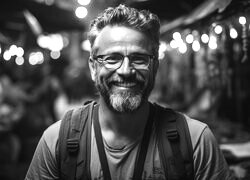Edytor tapety: Mężczyzna z zarostem i w okularach