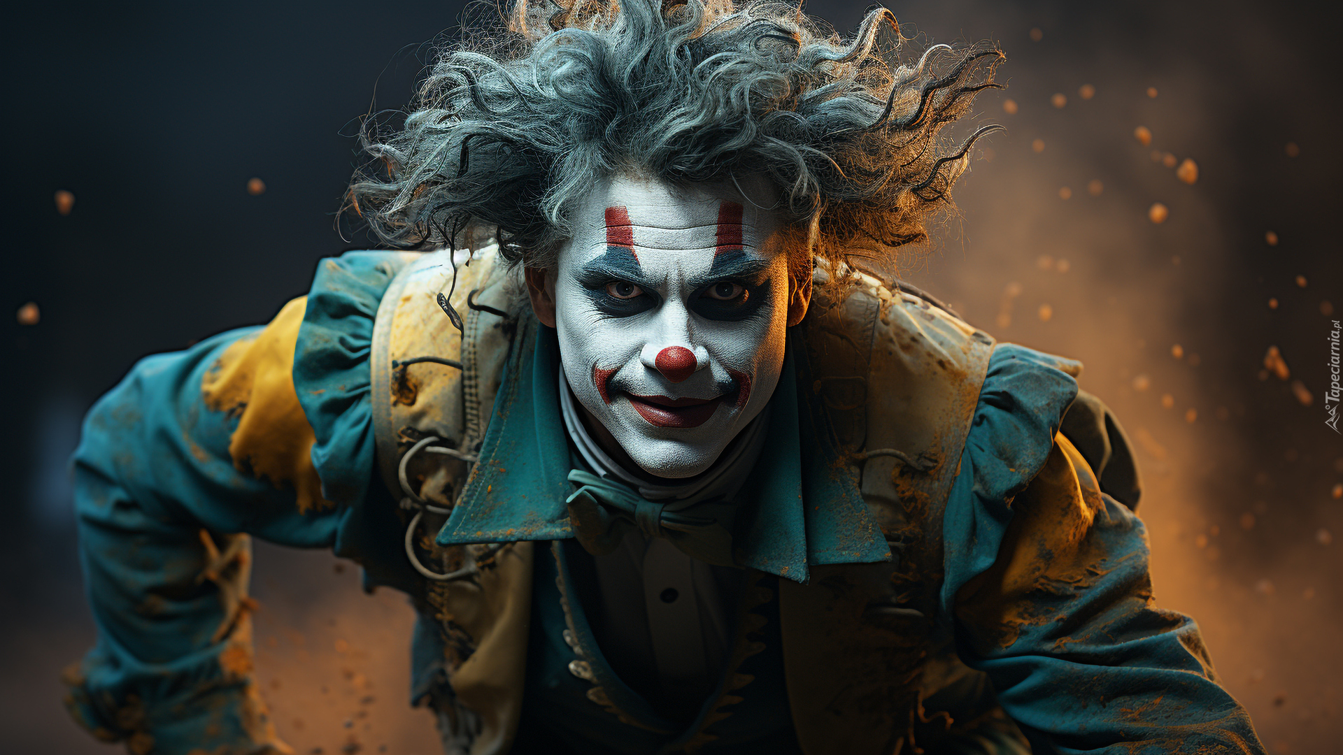 Edytor tapety: Klaun z rozwianymi włosami
