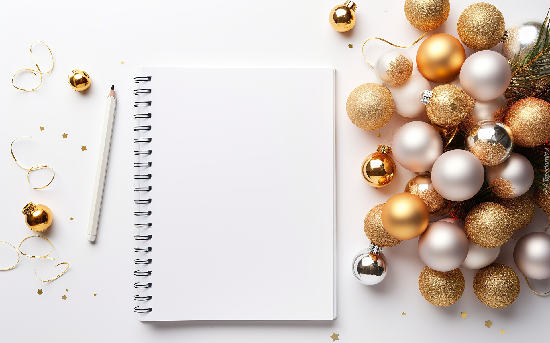 Edytor tapety: Kolorowe bombki i notes z ołówkiem