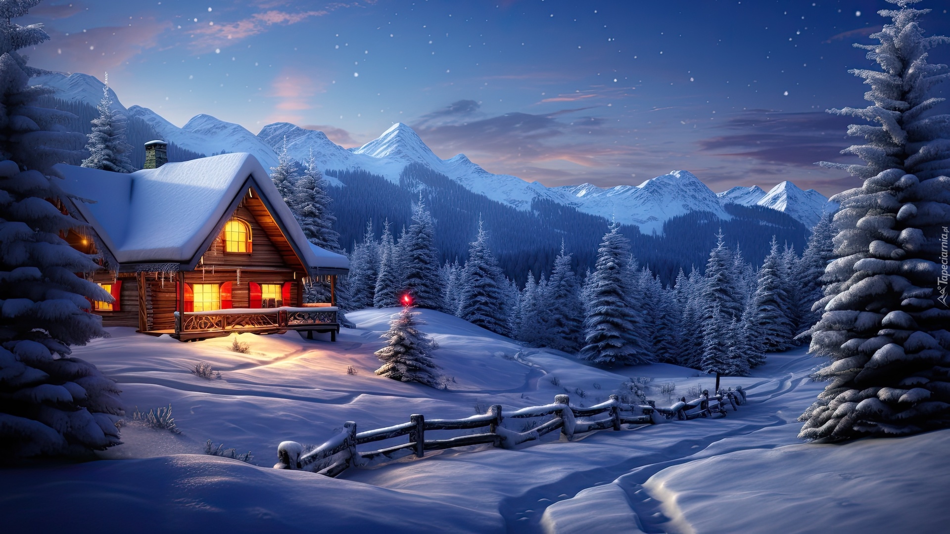 Edytor tapety: Drewniany dom na wzniesieniu pod lasem