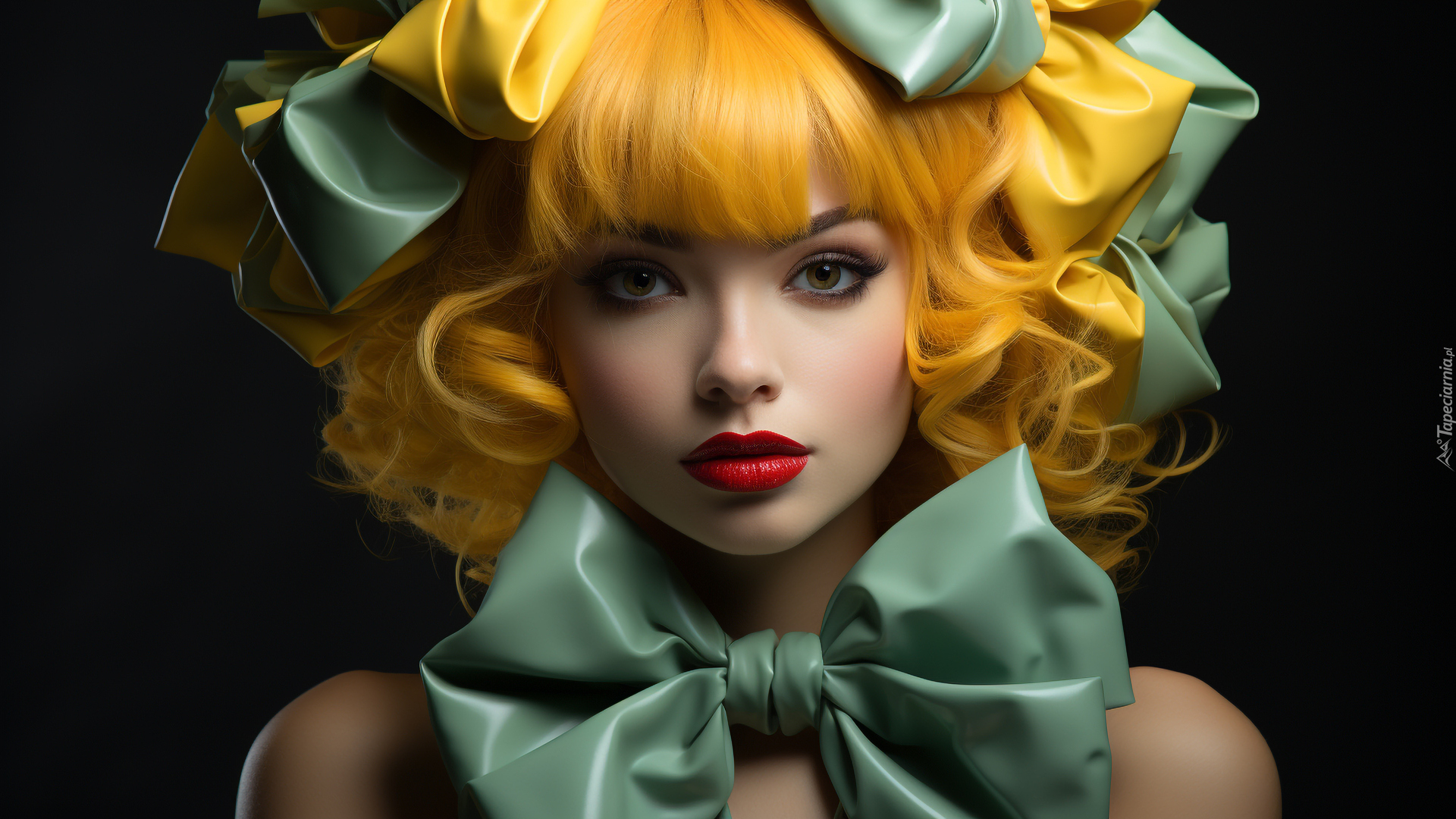 Edytor tapety: Żółtowłosa kobieta z kokardą