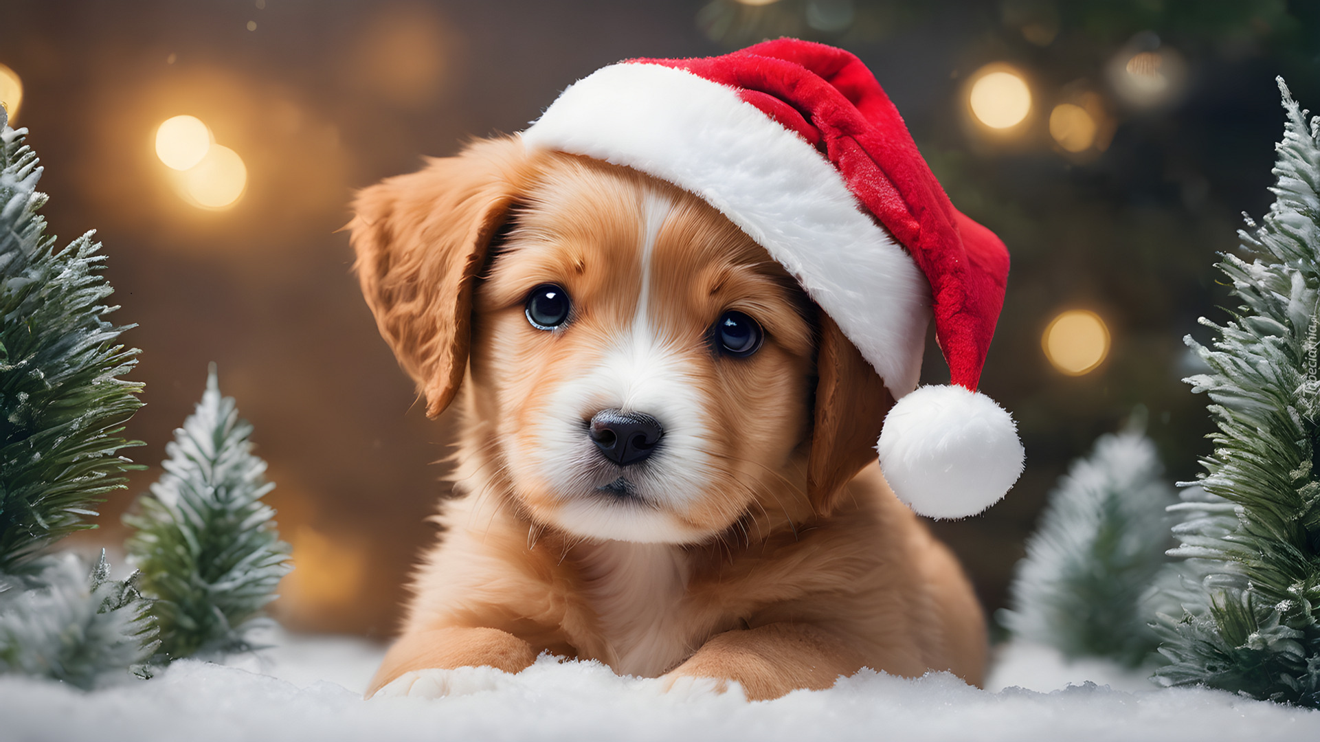 Edytor tapety: Szczeniak w czapce Mikołaja