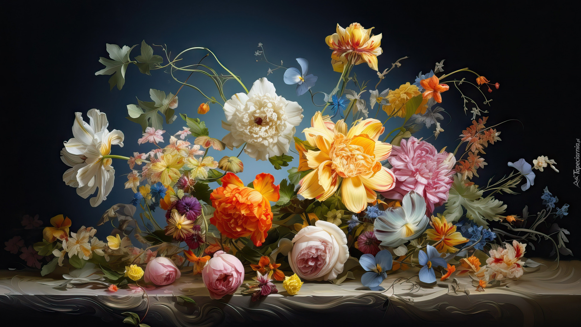 Edytor tapety: Rozkwitnięte kolorowe kwiaty w grafice
