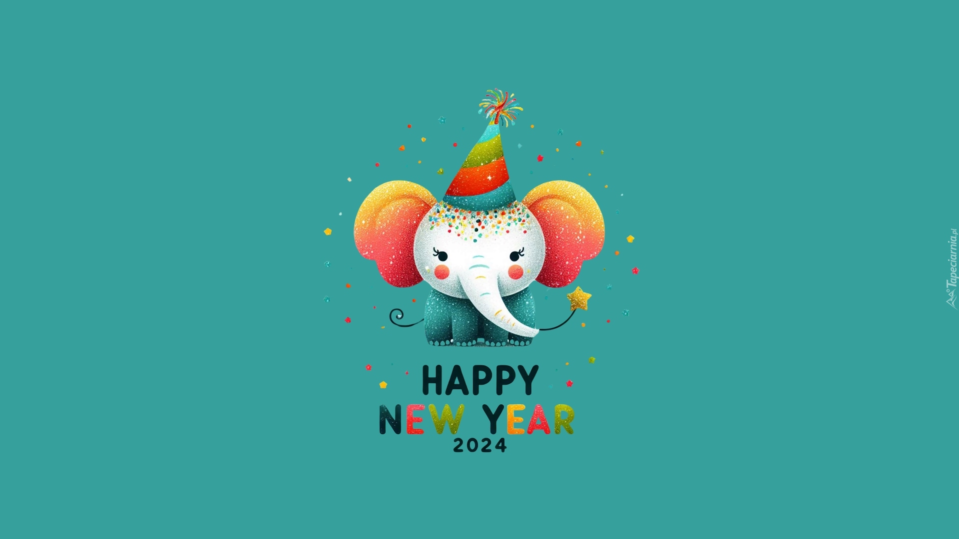 Edytor tapety: Słonik z życzeniami noworocznymi na zielonym tle