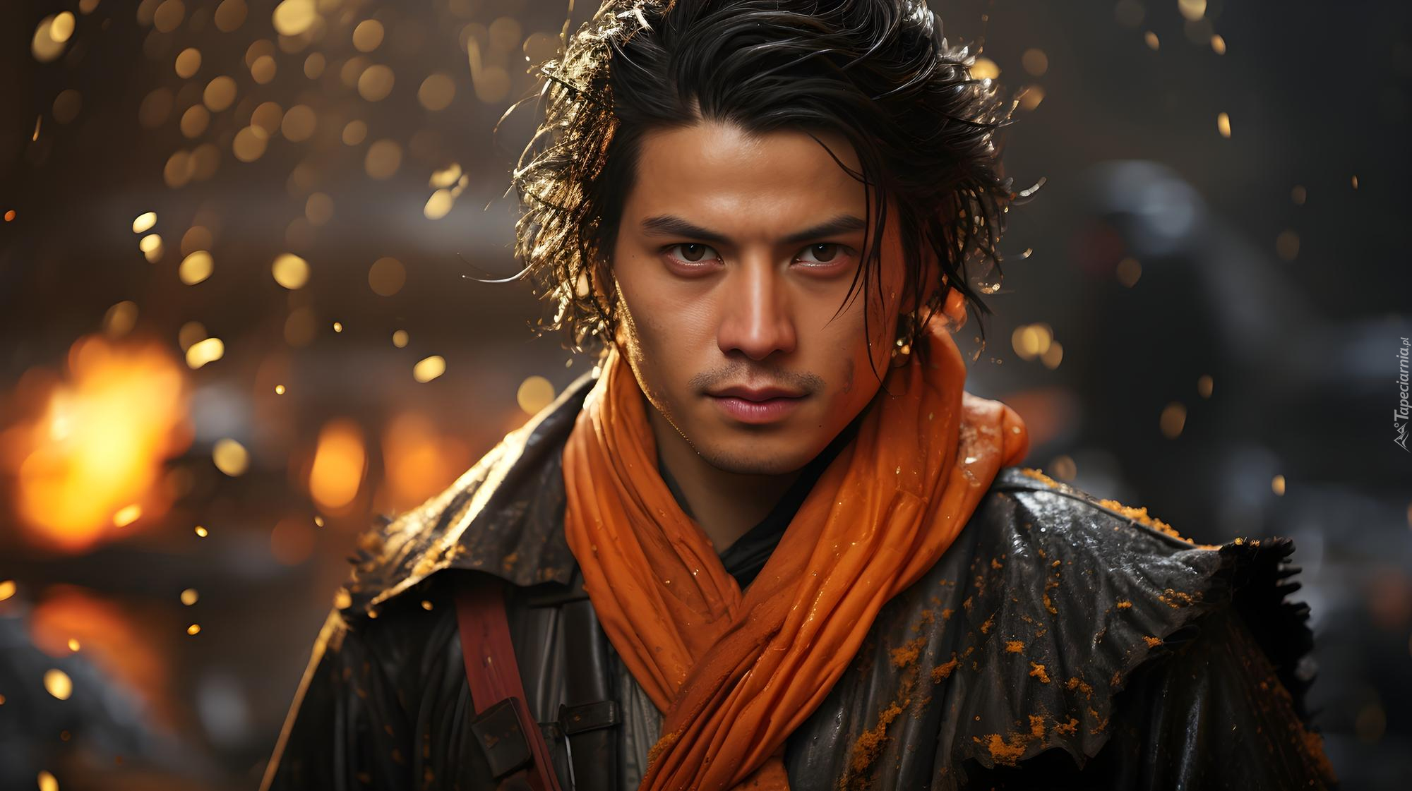 Edytor tapety: Mężczyzna w pomarańczowym szaliku