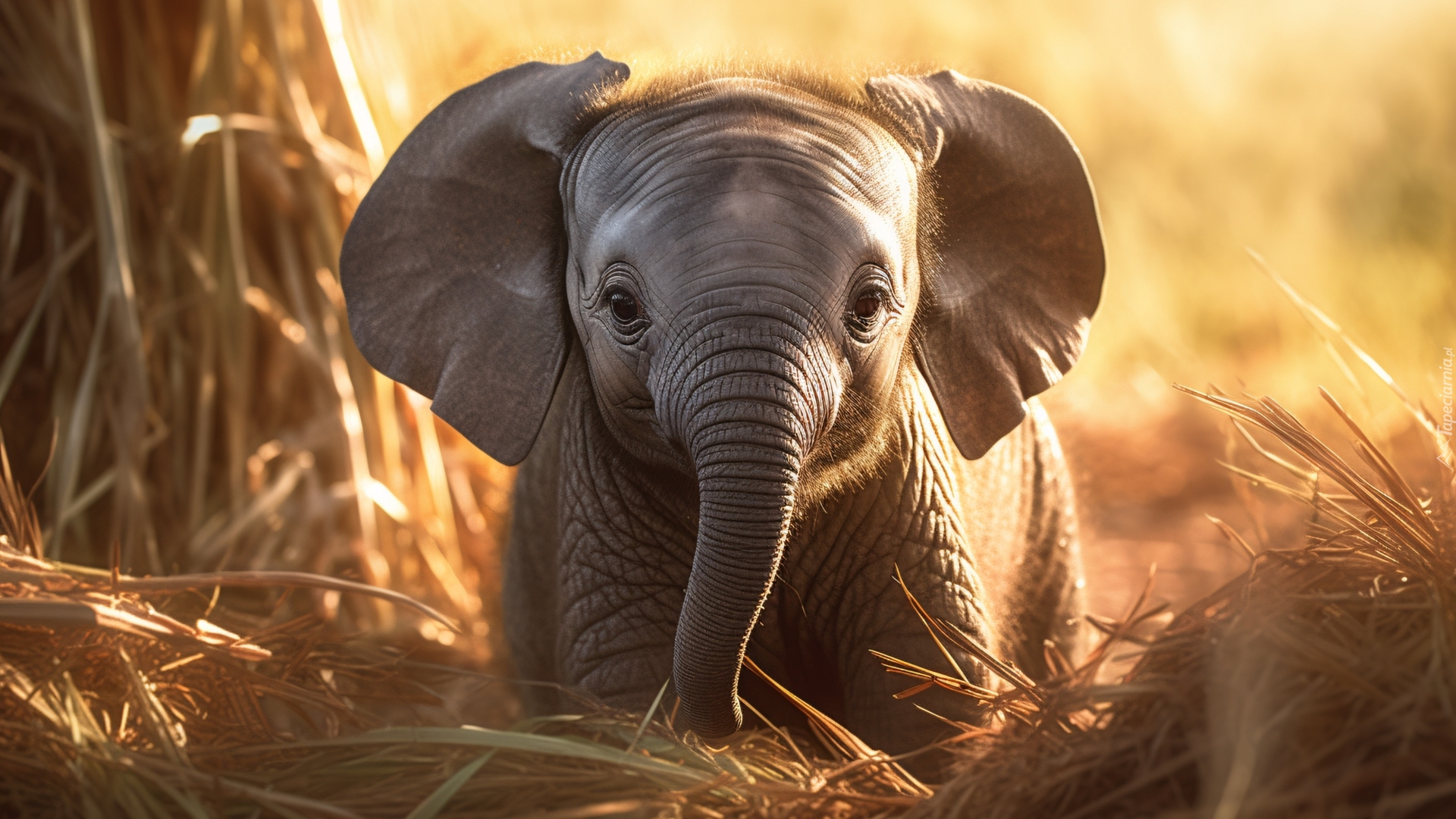Edytor tapety: Mały słoń w suchej trawie